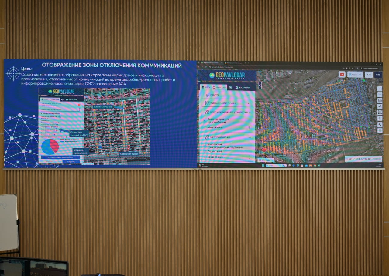 Бүгінгі таңда Павлодар облысының өңірлік геоақпараттық жүйесінің кезекші картасында «Апаттық-жөндеу жұмыстары» модулінің 1 кезеңі іске асырылды. Модульдің жұмыс принципі апат орын алған немесе жоспарлы жұмыстар жүргізіліп жатқан жерлерді жедел көрсету, сондай-ақ, өшіру себептері мен жұмыстардың аяқталу мерзімдері туралы хабарламаларды автоматты түрде жіберу мүмкіндігі болып табылады.