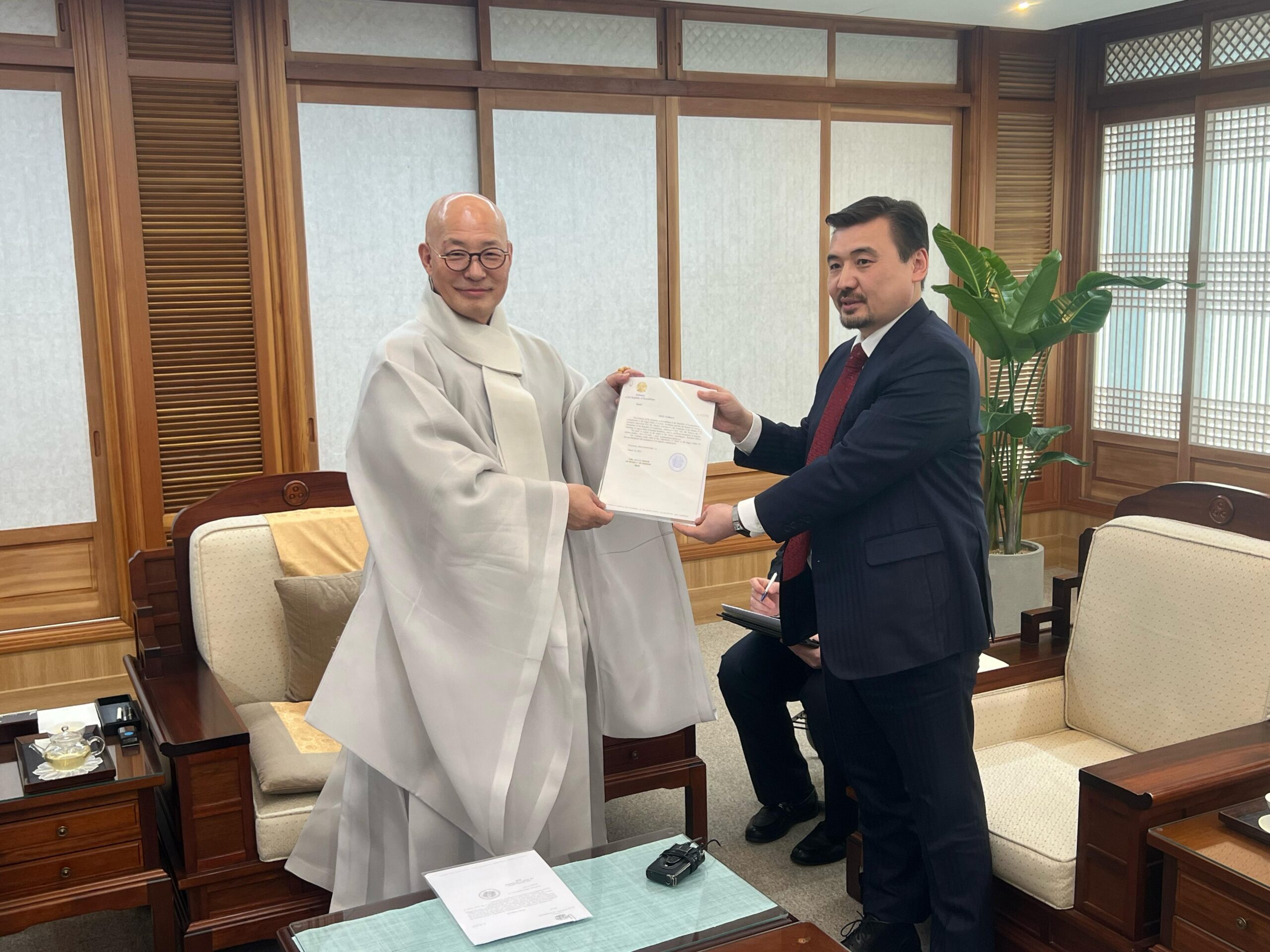 Сеул, 2025 жылғы 19 наурыз – Қазақстан Елшісі Нұрғали Арыстанов корей буддизмі «Чогие» орденінің Президенті, құрметті Джин Вумен кездесті.