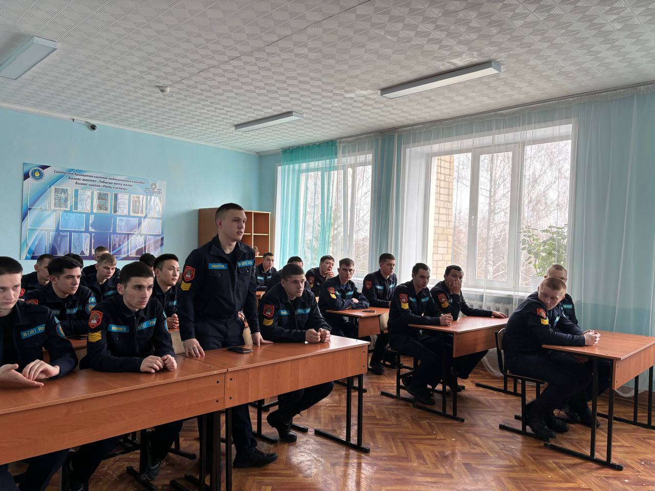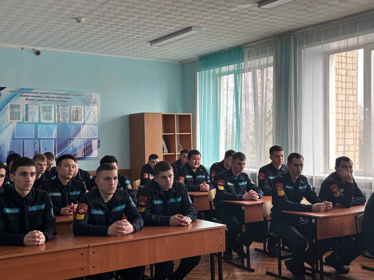Көктемгі әскерге шақыру науқаны аясында Азаматтық қорғаныс басқармасы мен қалалық әскери комиссариат қызметкерлері Солтүстік Қазақстан жоғары кәсіптік-педагогикалық колледжінің (СҚЖКПК) бітіруші курс студенттерімен кездесу өткізді.