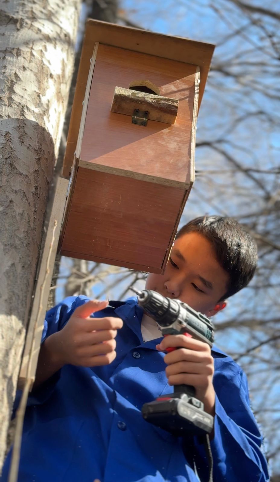 Жетісу ауданының №87 мектебінің оқушылары «Таза Қазақстан» акциясы аясында Көкмайса саябағында құстарға арналған ұяларды орнатты.