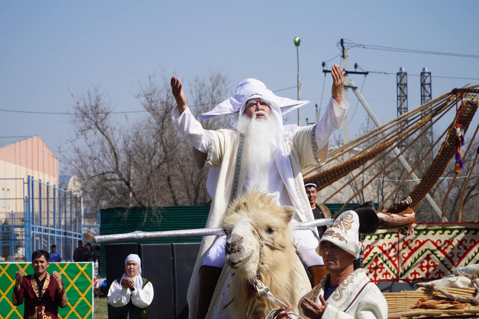 Мерекелік шара Наурыз керуені атты ерекше композициялық қойылыммен басталды. Көштің басында ақ түйеге мініп, Қыдыр ата мен Жер-ана көрініс тапты. Олардың соңынан ұлттық салт-дәстүрдің символына айналған көш керуені – аттылар, құсбегілер, тазы жетектеген аңшылар, ақ жаулықты әжелер мен ақсақалдар, өнерпаздар, спортшылар, дәрігерлер мен ұстаздар жүріп өтті. Бұл көрініс – табиғаттың жанданып, көктемнің келуімен бірге халықтың бірлік пен татулықта өмір сүруін бейнеледі.