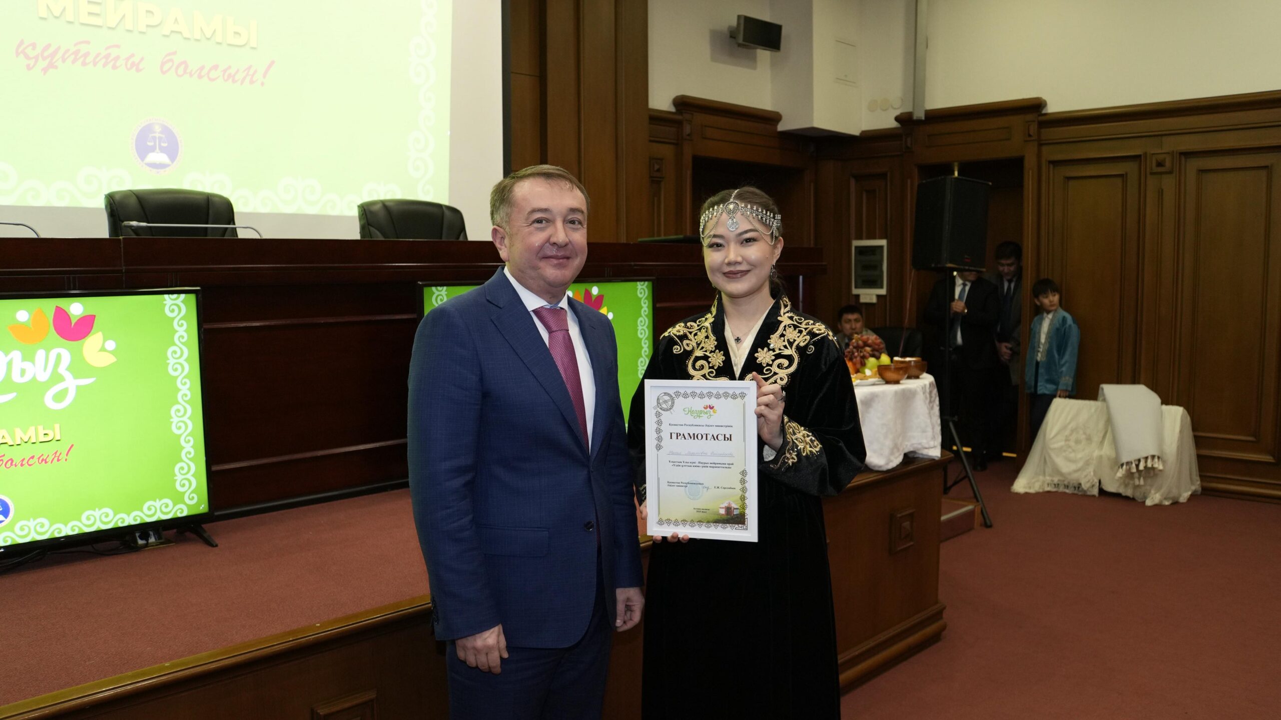 Мерекелік іс-шараны ашқан Әділет министрі Ерлан Сәрсембаев барша Әділет органдарының қызметкерлерін ұлыстың ұлы күні Наурыз мерекесімен құттықтады.
