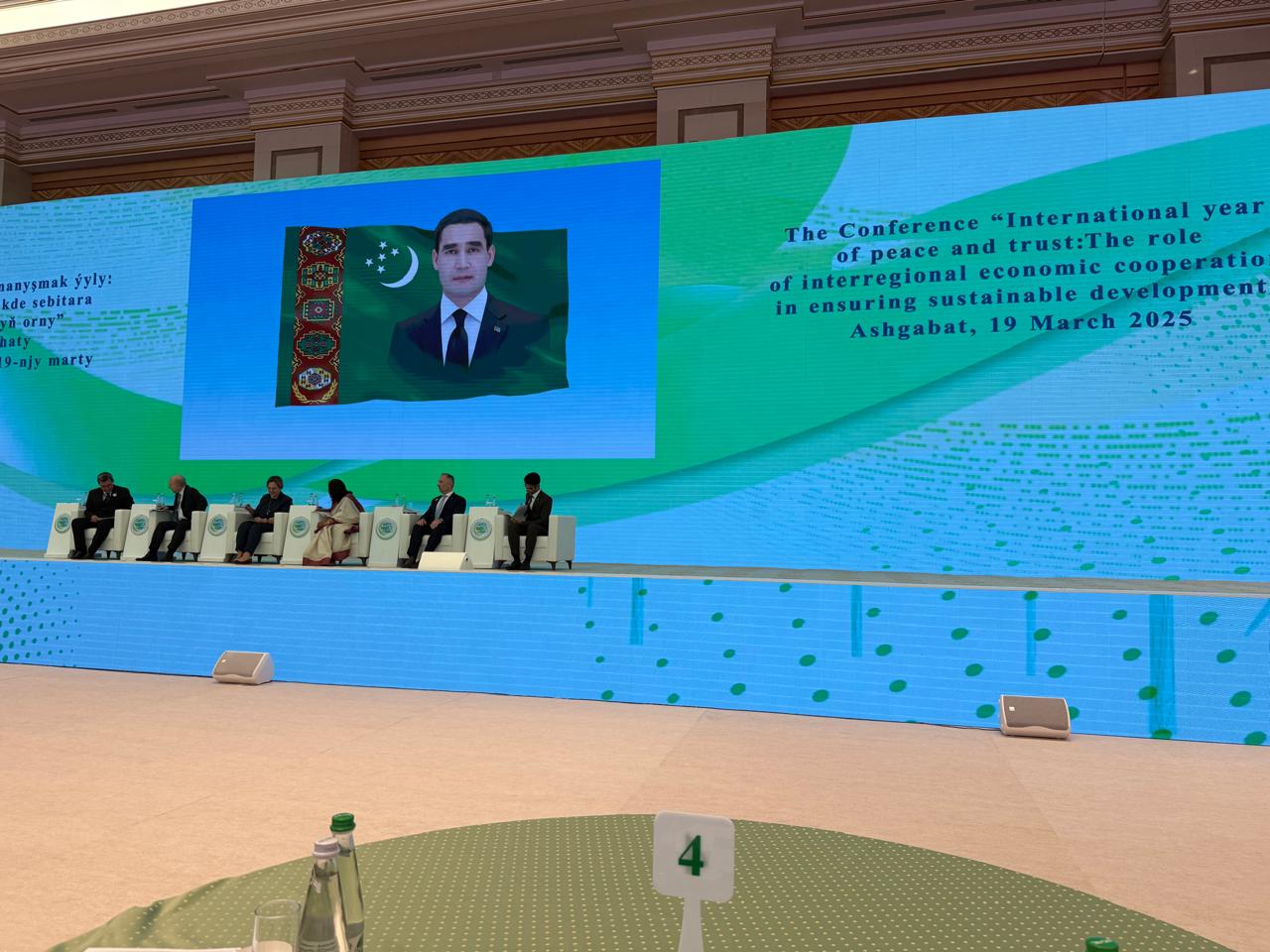 Ашхабад, 2025 жылғы 19 наурыз – Қазақстан Республикасы Энергетика вице-министрі Әлібек Жамауов Ашхабадта өткен «Бейбітшілік және сенім жылы: Орнықты дамуды қамтамасыз етудегі өңірлік экономикалық ынтымақтастықтың рөлі» атты халықаралық конференцияға қатысты.
