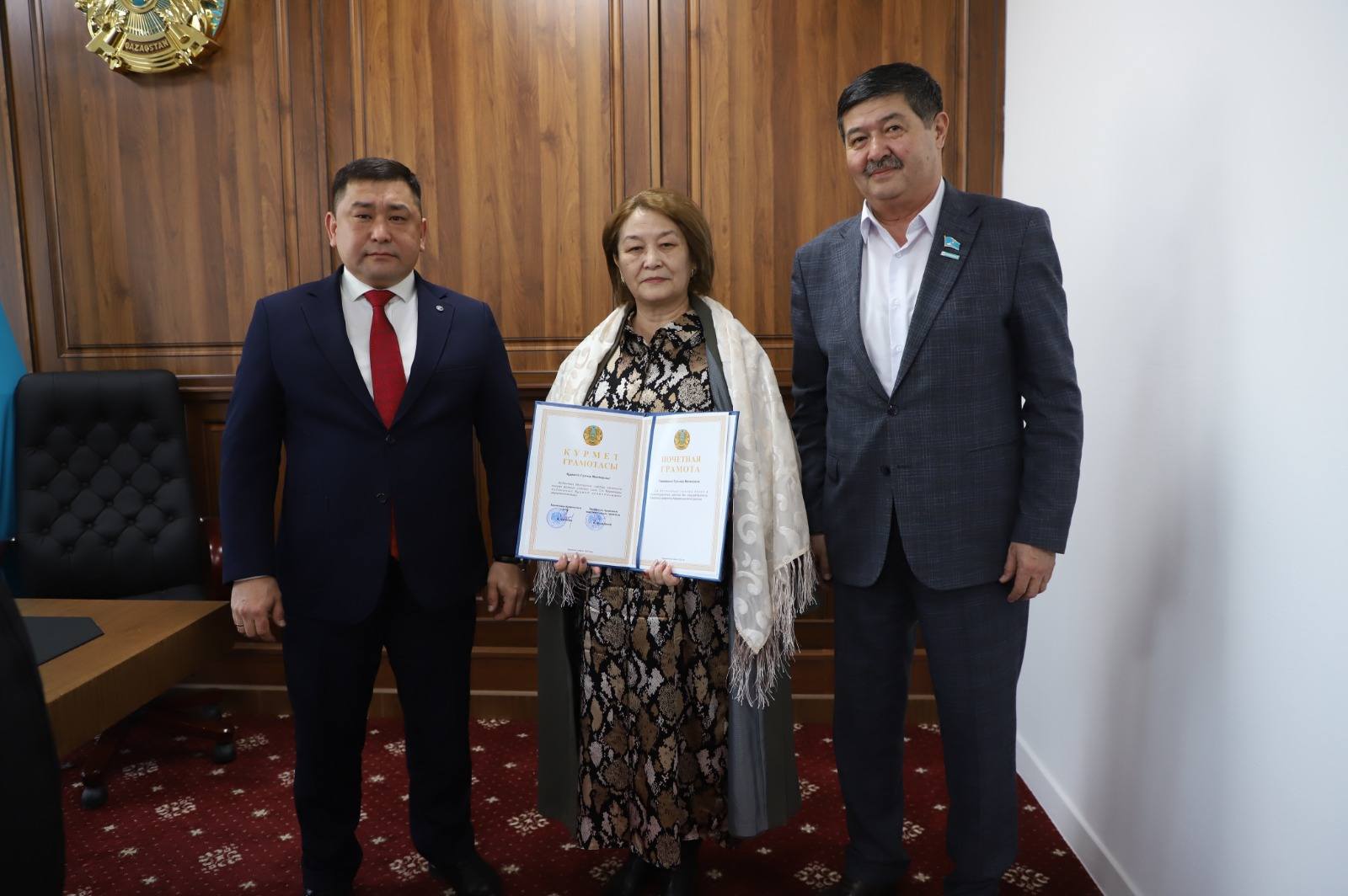 Жиында аудан әкімдігі мен аудандық мәслихаттың бірлескен шешімімен Гүлнар Мәлікқызына ауданның ең жоғары марапаты – «Құрмет грамотасы» табысталды.