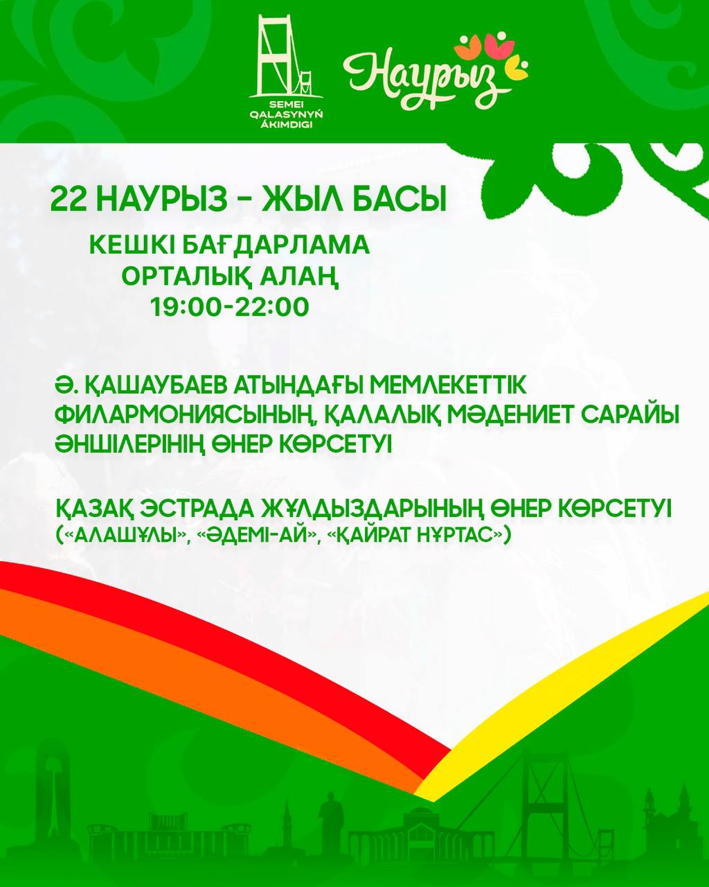 22 наурыз күні сағат 11:00-де орталық алаңда «Наурыз – бірлік бастауы» мерекелік шарасына шақырамыз!