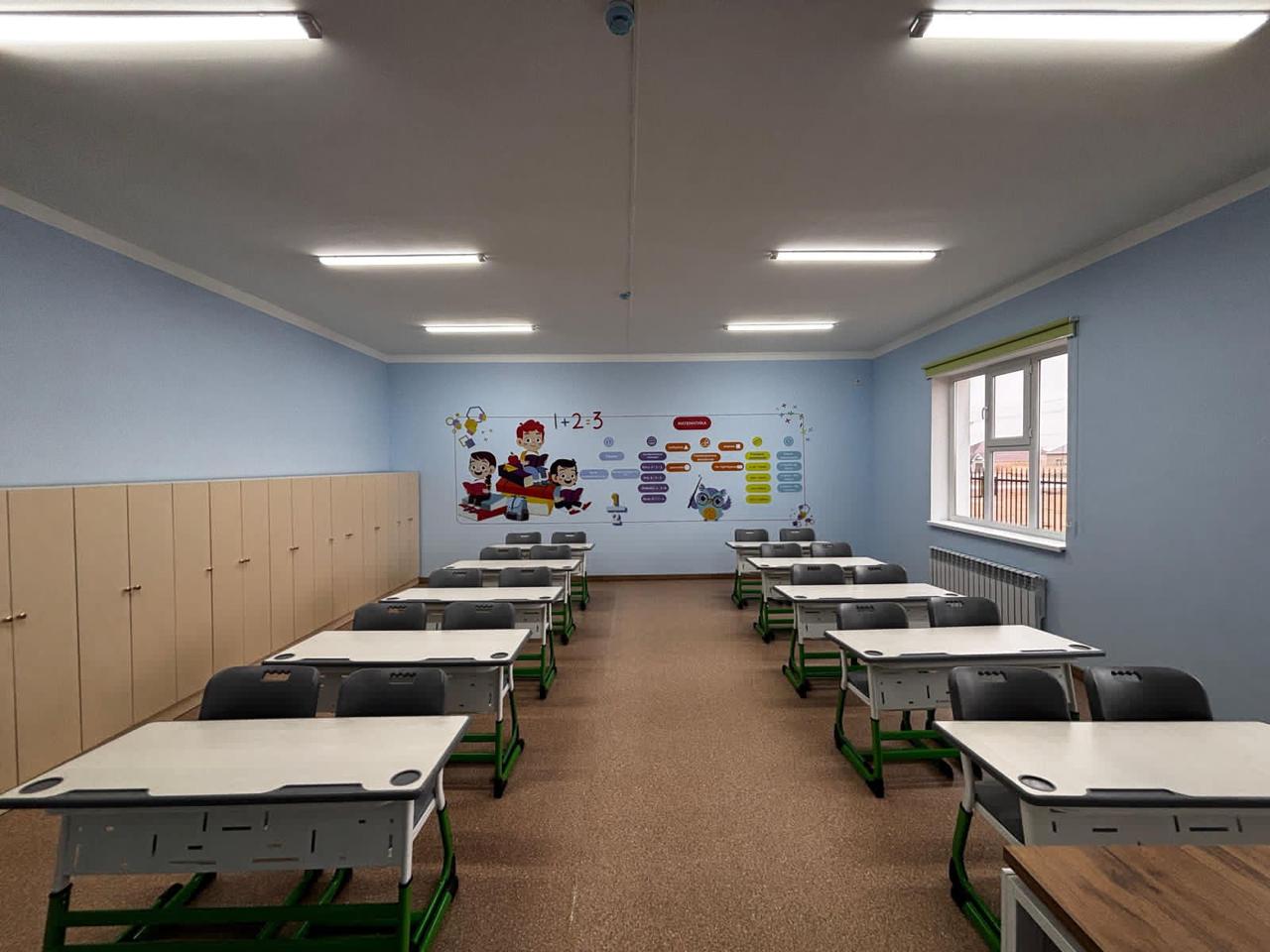 Мектеп 2500 шаршы метр аумақта орналасқан және екі кезеңде 500 оқушыны қамтуға мүмкіндік береді. Мұнда 17 оқу кабинеті, химия, физика, биология, информатика пәндеріне арналған зертханалар, робототехника кабинеті бар. Сонымен қатар, 60 орындық асхана, 80 орындық акт залы және соңғы үлгідегі 32 бейнебақылау жүйесі орнатылған. Барлық кабинеттер өрт қауіпсіздігі құрылғыларымен жабдықталған.