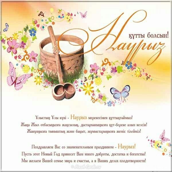 Ұлыстың ұлы күні елімізге ырыс-береке, молшылық ала келсін. Халқымыздың ынтымақ-бірлігі арта берсін. Баршаңызға мықты денсаулық, татулық, әр шаңыраққа құт-береке тілеймін. Өскелең ұрпақты оқыту мен тәрбиелеу жолында абыройлы істеріңізге табыс тілеймін! Шәкірттеріңіз биік шыңдардан көрініп, еңбектеріңіздің жемісін көріңіздер!