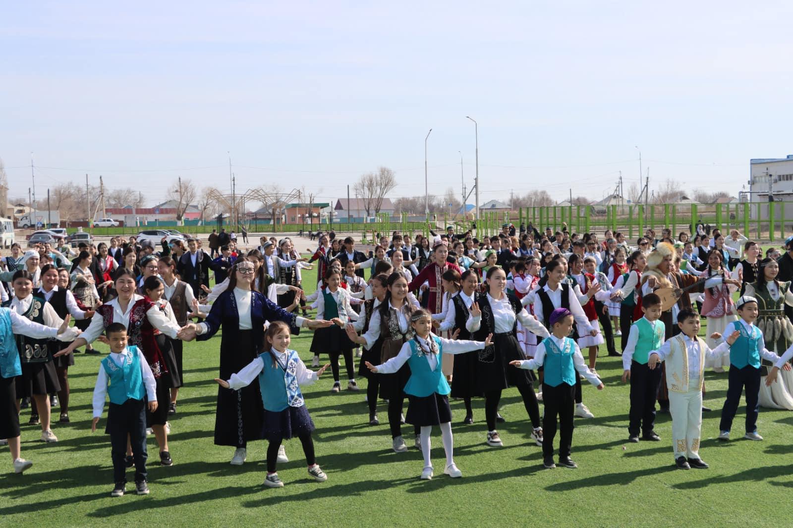 Салтанатты шараның соңында аудандық «Әкелер ансамблі» мен шеруге қатысушылар аудан тұрғындарын әз-Наурыз мерекесімен құттықтады.