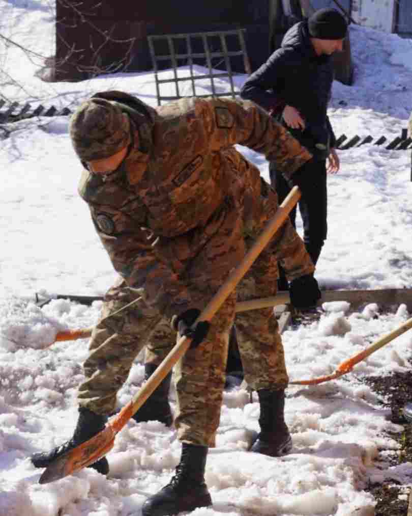 Ұлттық ұлан сарбаздары тыл еңбеккерлеріне қар тазалауға көмек көрсетті