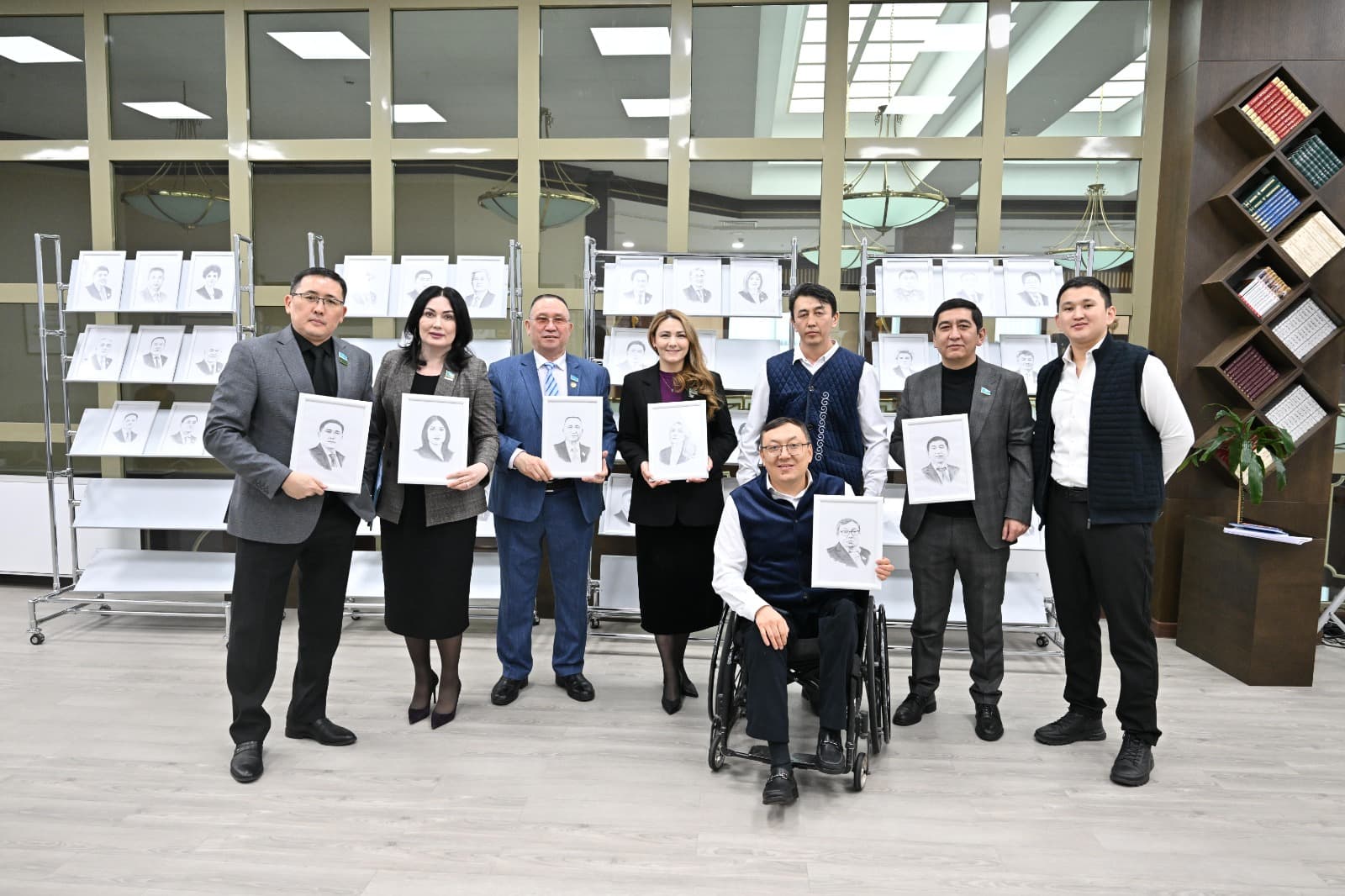 Елорданың төрінде өткен көрмеде суретшінің тарихи және танымал тұлғалардың бейнеленген туындылары қойылды.