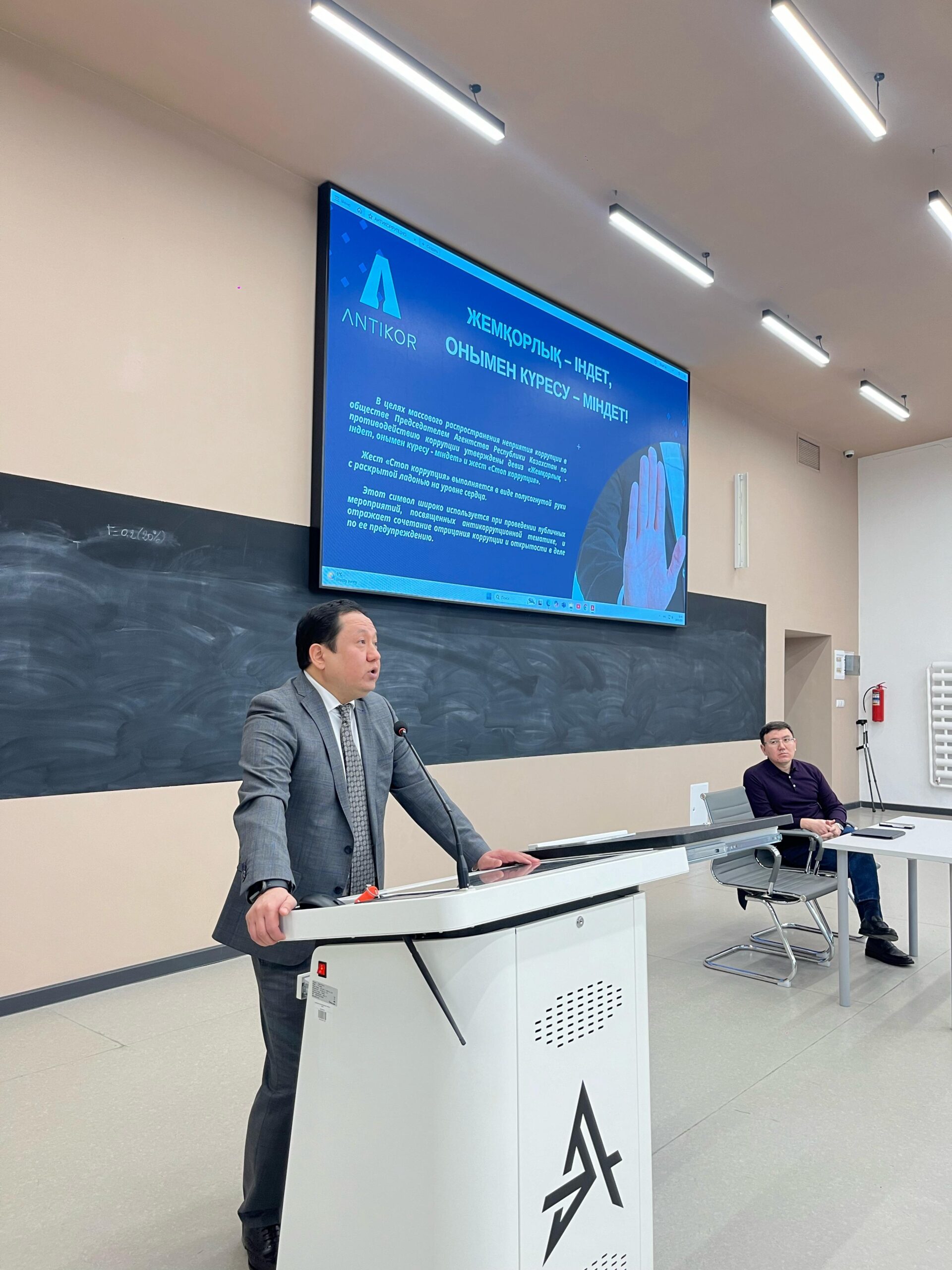 2025 жылғы 26 наурызда Алматы энергетика және байланыс университетінде жастар арасында құқықтық сана мен сыбайлас жемқорлыққа қарсы мәдениетті қалыптастыруға арналған «Заң және тәртіп – өзіңнен басталады!» атты дәріс өткізілді.