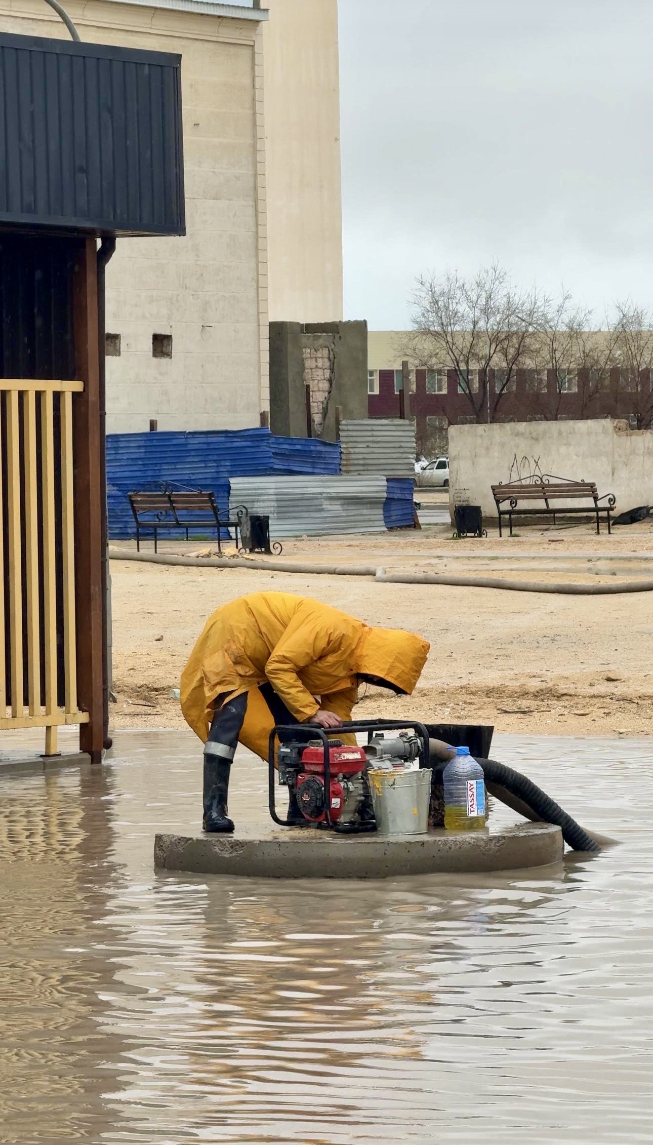 Бұл жұмыстарға 13 қызметкер, 12 су сорғыш мотопомпа және арнайы 4 техника жұмылдырылды. Нәтижесінде 350 м³ жаңбыр суы алынды.