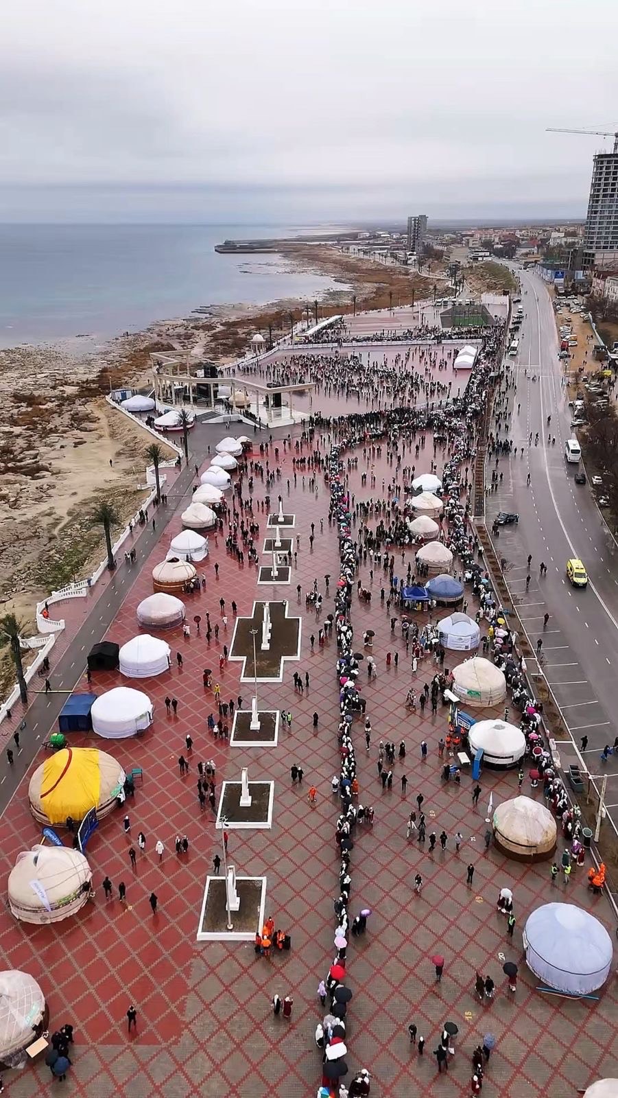 Мерекелік шараны балалар шығармашылық концерті жалғастырып жатыр. Наурыз мерекесіне орай теңіз жағалауында 30-ға жуық киіз үй тігіліп, ақ дастархан жайылды.