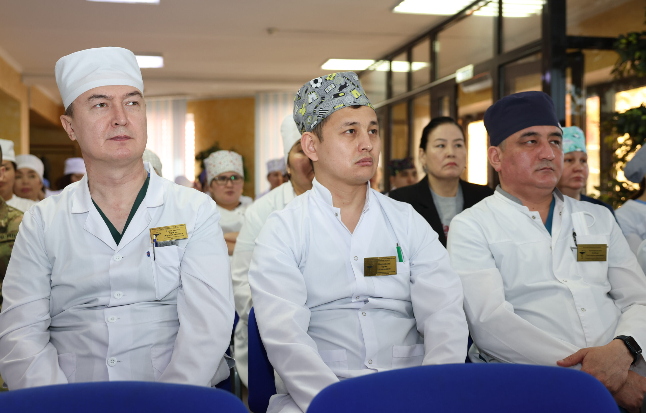 Еңбегімен еленген госпитальдің үздік қызметкерлері Қорғаныс министрлігі басшылығының атынан Құрмет грамоталарымен және алғыс хаттармен марапатталды.