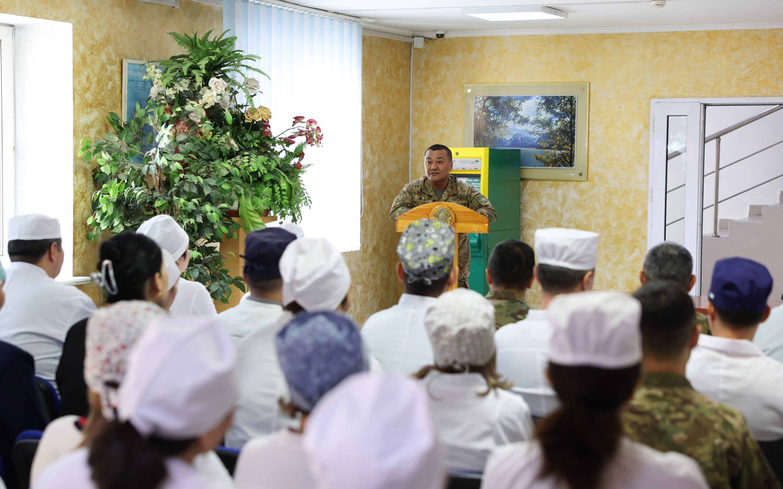 Көктемгі мереке қарсаңында Қорғаныс министрінің тыл және әскери инфрақұрылым жөніндегі орынбасары генерал-лейтенант Қаныш Әбубәкіров Қорғаныс министрлігінің Бас әскери клиникалық госпиталіне барды.