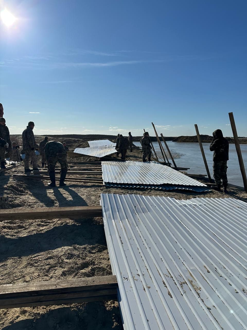 Қызылқоға ауданындағы ауыл іргесіндегі «Кенен» көпірі маңында ТЖД командалық-штабтық машинасы 24/7 режимінде бақылау жүргізуде. Сонымен қатар, өзен жағалауын бекіту жұмыстары жүргізіліп, бүгінгі күні Департамент қызметкерлерімен 8800 қап төселіп, жалпы саны 14950 қапқа құм толтырылып дайындалды.