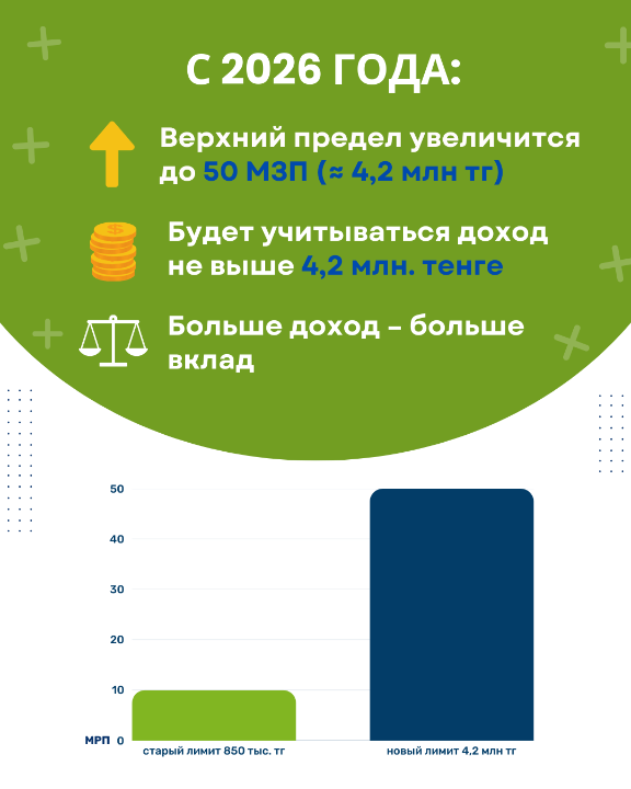 Жарналар базасының жоғарғы шегін 10 ЕТЖ-дан 50 ЕТЖ-ға дейін арттыру