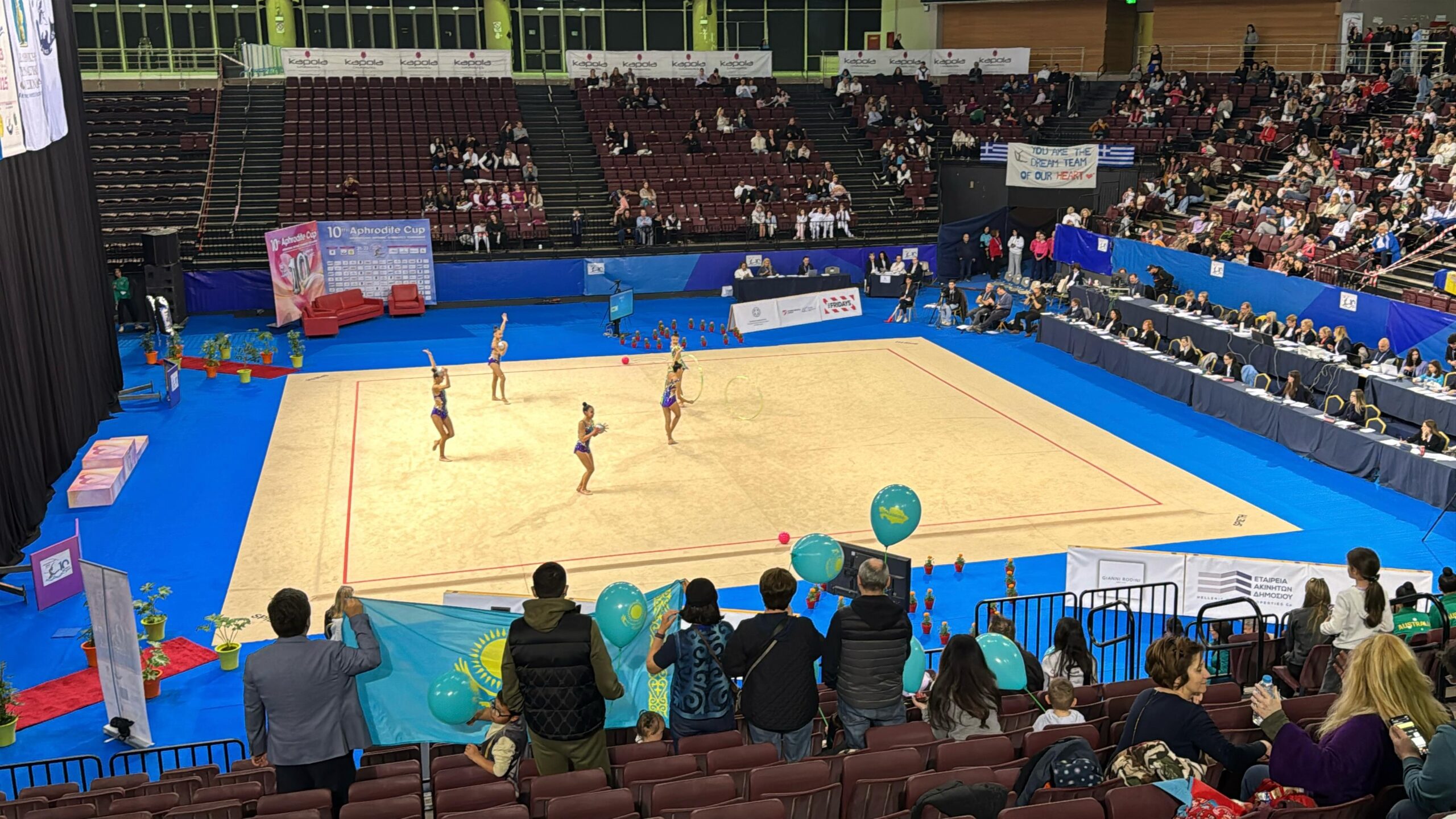 Афина, 2025 жылғы 23 наурыз – Қазақстанның көркем гимнастикадан ұлттық құрамасы 21–23 наурыз аралығында Афина қаласындағы Faliro Olympic Indoor Hall спорт кешенінде өткен «Aphrodite Cup 2025» атты X мерейтойлық халықаралық турнирге қатысты. Жарысқа әлемнің 27 елінен спортшылар қатысып, турнир көркем гимнастика бойынша халықаралық күнтізбедегі маңызды іс-шараға айналды.