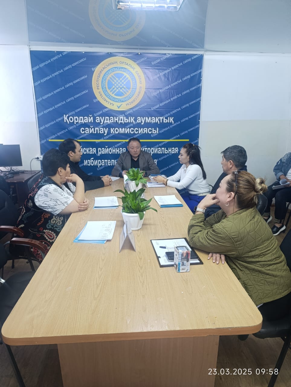 2025жылғы23 наурыздаҚордайаудандықаумақтық сайлау комиссиясы Қордайауданы Степной ауылдық округі әкімінің сайлауындайындаужәнеөткізумәселелері бойынша учаскеліксайлаукомиссияларыменсеминар-кеңес өткізді.