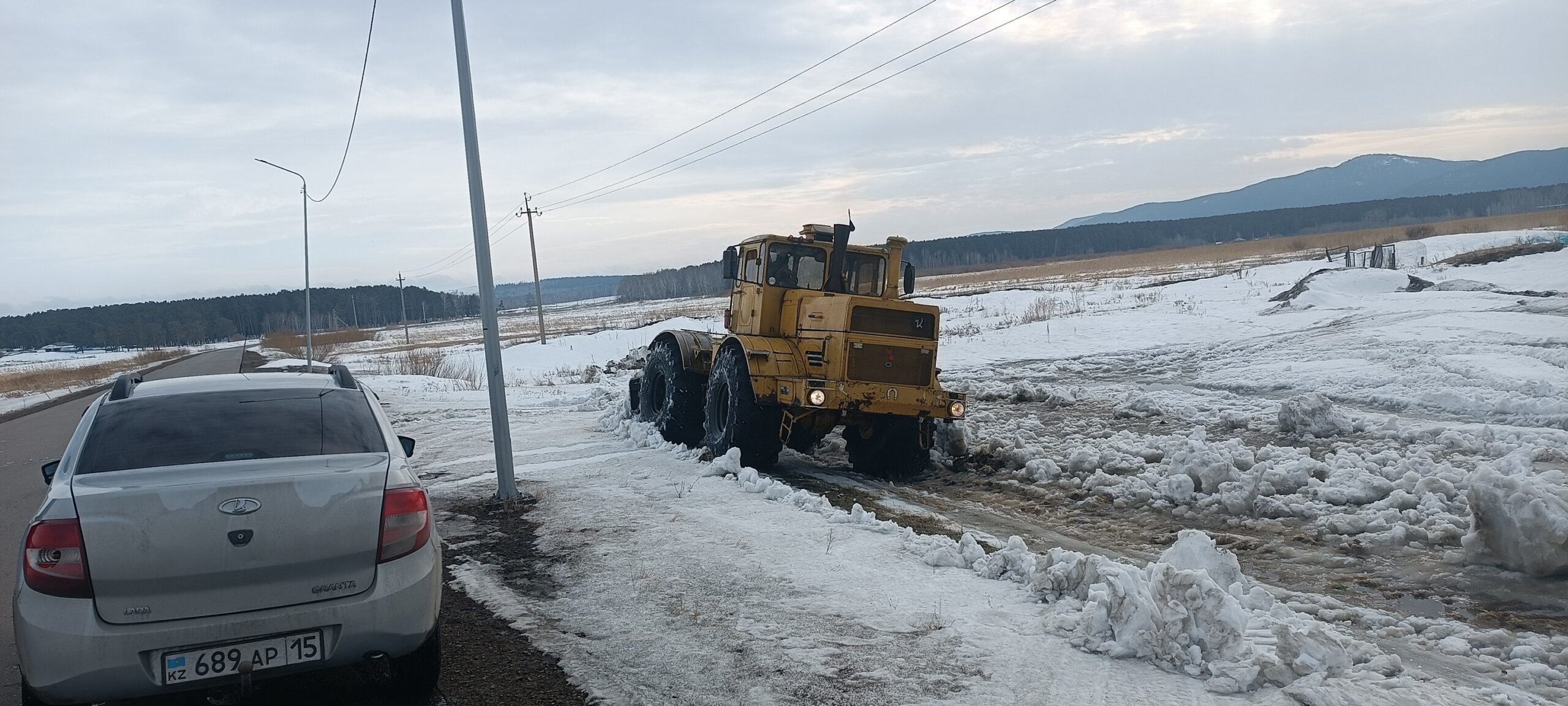 5. Адамов ЖК фронтальды тиегіші, аллеяларды тазарту Жоғарғы Бурлук ауылында еріген суларды бұру үшін өткелдерді ашу.
