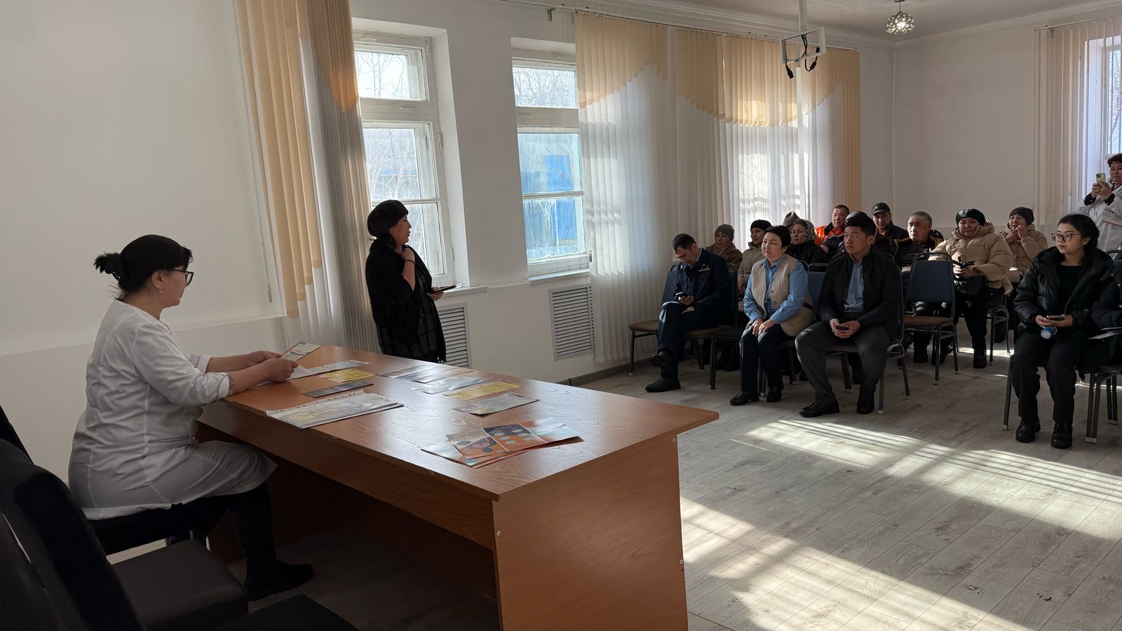 #Иә! Біз туберкулезді жеңе аламыз: міндеттенеміз, инвестициялаймыз, әрекет етеміз», Дүниежүзілік туберкулезге қарсы күрес күніне орайластырылған Қарағанды бөлімшелік санитарлық–эпидемиологиялық бақылау басқармасының мамандары Қарағанды облысы Денсаулық сақтау басқармасының «Шет ауданының аудандық ауруханасы» ШЖҚ КМК Ақадыр станциясының ауылдық ауруханасының ШЖҚ КМК фтизиатрия және салауатты өмір салты бөлімінің өкілдерімен бірлесіп, Ақадыр сигнал беру және байланыс дистанциясының қызметкерлерінің арасында ақпараттық-түсіндіру жұмыстарын жүргізді. Семинар барысында клиника, емдеу, туберкулездің алдын алу және анықтау мәселелері түсіндірілді; қатысушылардың назарына Қарағанды өңірінде туберкулезбен сырқаттанушылық бойынша статистикалық мәліметтер ұсынылды.