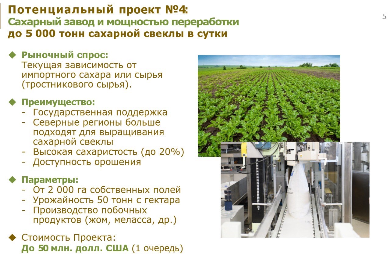 «Жоба тәулігіне 5 мың тонна қант қызылшасын өңдеуге мүмкіндік бермек. Шикізаттың жартысынан көбін өзіміздің жерлерде өсіреміз, қалғанын көрші фермерлерден сатып аламыз», — деді Ғабиден Балғынбеков.