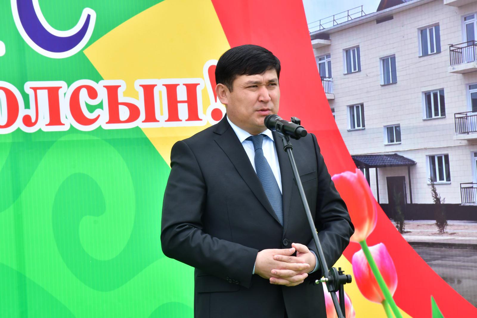 Аудан әкімі Азат Оралбаев «Қасиетті рамазан айында игілікті жаңалықтар болып жатыр, мемлекет басшысы тапсырмасымен, облыс басшылығының қолдауымен өздеріңізге баспана беріп, қуаныш сыйлаудың сәті түсіп отыр» деп, құттықтау лебізін айтып, пәтер кілттерін салтанатты түрде табыс етті.