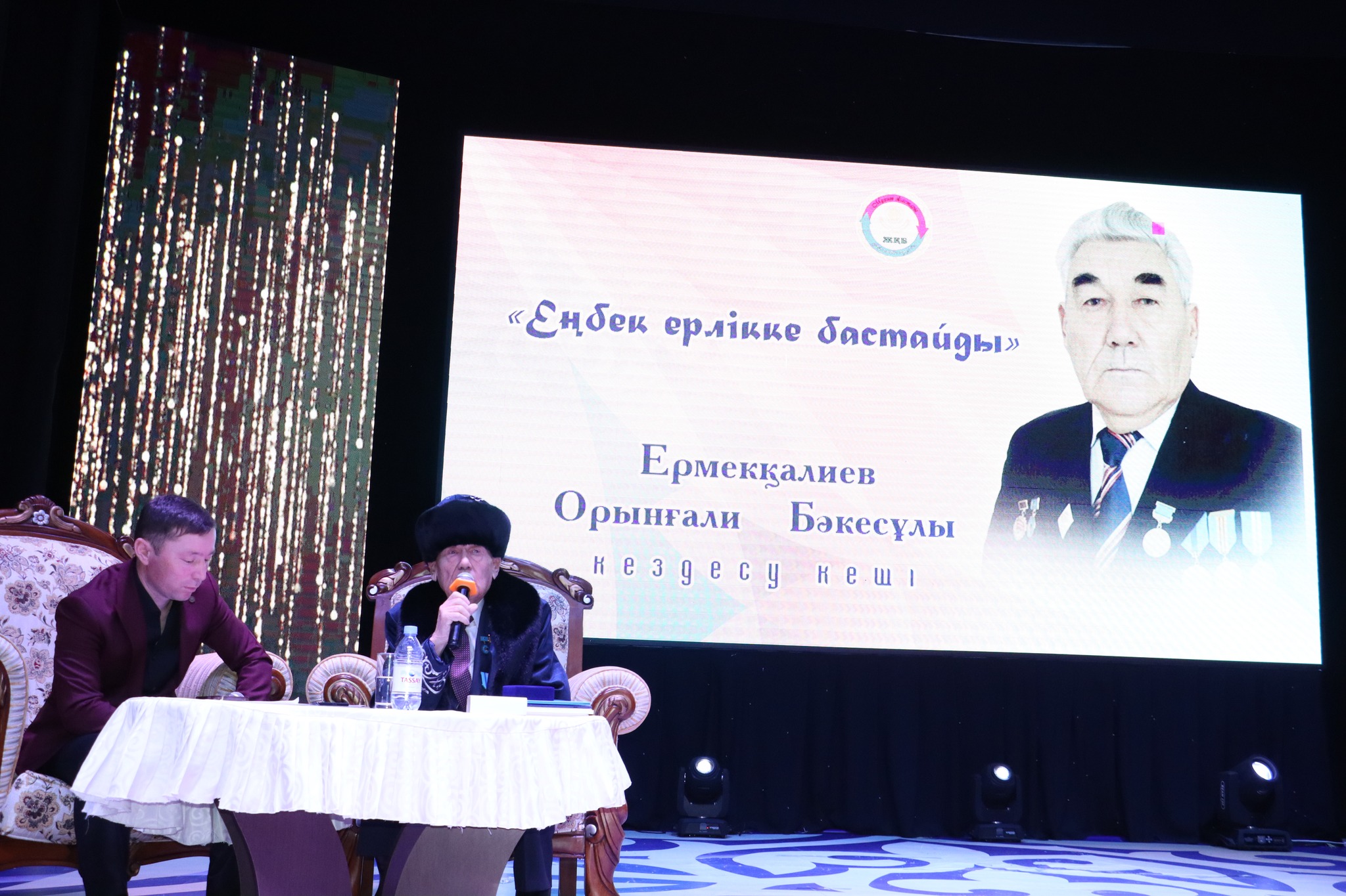 Мемлекет басшысы Қасым-Жомарт Тоқаевтың Жарлығымен ағымдағы жыл «Жұмысшы мамандықтарының жылы» деп жариялануына байланысты еңбек адамдарының еңбегін дәріптеу мақсатында дәл осындай атаумен бүгін Ғарифолла Құрманғалиев атындағы аудандық мәдениет үйінде алғашқы еңбек жолын қарапайым жұмысшыдан бастап, өзінің алғырлығы мен табандылығының, еңбекқорлығының арқасында ауданда бірнеше лауазымды қызметтерді абыроймен атқарған, ауданның әлеуметтік жағдайы мен экономикасын дамытуға зор үлес қосқан елге сыйлы ардагер Орынғали Ермекқалиевтің 85 жасқа толуына арналған кездесу кеші өтті.