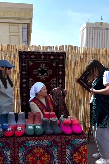 Жәрмеңкеде ұлттық нақыш пен заманауи стильді үйлестіре отырып жасалған бомберлер, бас киімдер, әшекей-бұйымдар, аксессуарлар мен қол-өнер бұйымдары сатылымға шықты.