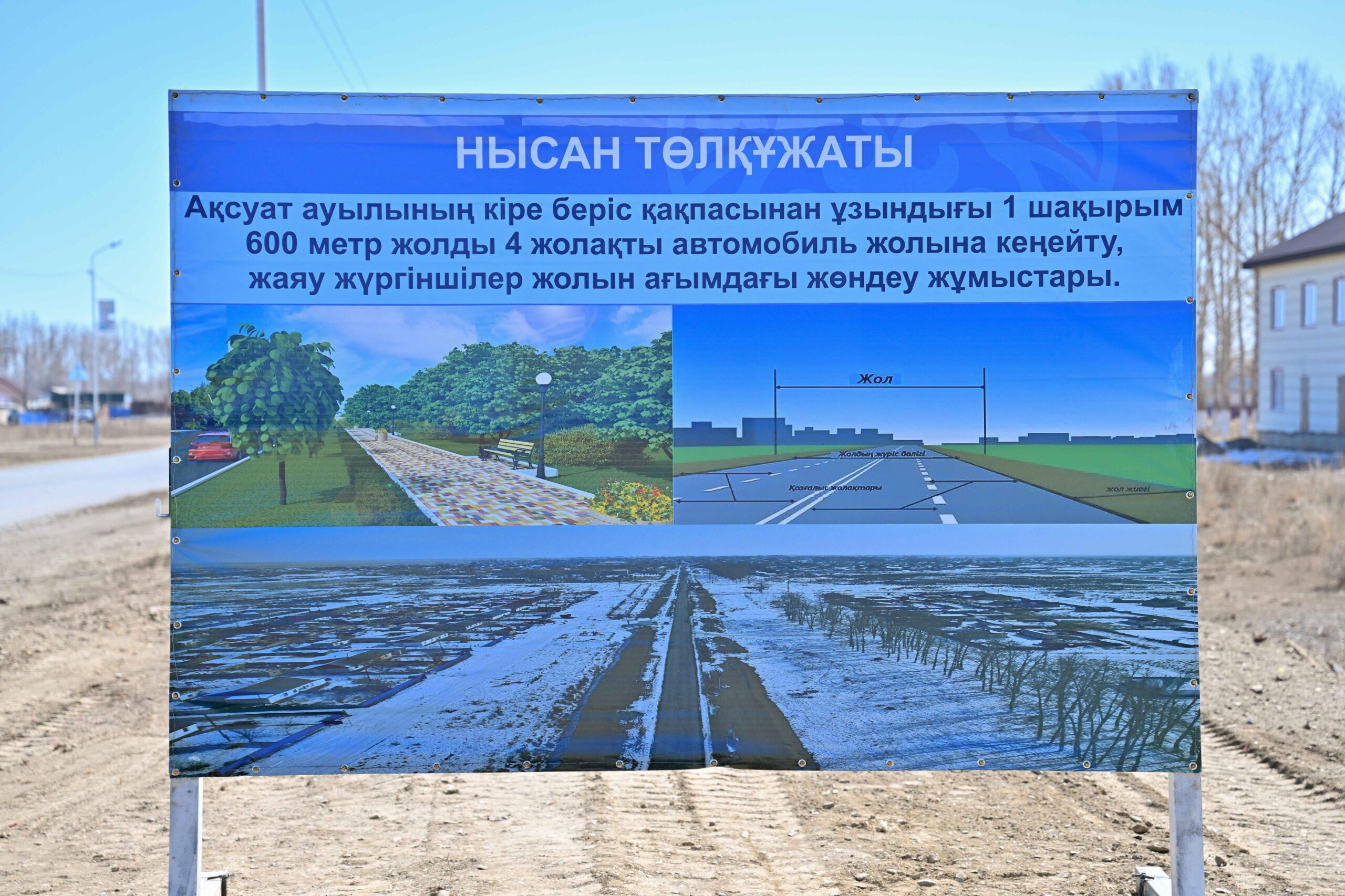 Облыс әкімі аудандағы жұмыс сапарын Ақсуат ауылынан бастады. Қазіргі уақытта аудан орталығы – Ақсуат ауылындағы негізгі көшелерді жаңғырту жұмысы жалғасуда. Қабанбай көшесінің кіреберіс қақпасынан орталық стадионға дейінгі 2 шақырымға жуық жол 4 жолақты болып кеңейтіліп жатыр. Жолдың ені 13 метрге дейін ұлғайтылып, асфальт жамылғысы төселмек. Сонымен қатар, облыс басшысына Қабанбай көшесінің бойына жаяу жүргіншілер жолын салу және жарықтандыру жобасы таныстырылды. Жоба аясында ұзындығы 1,5 шақырым болатын жаяу жүргіншілер жолы жөнделіп, 6 шақырымды құрайтын көше бойына 200-ге жуық жарық бағанасы орнатылмақ.