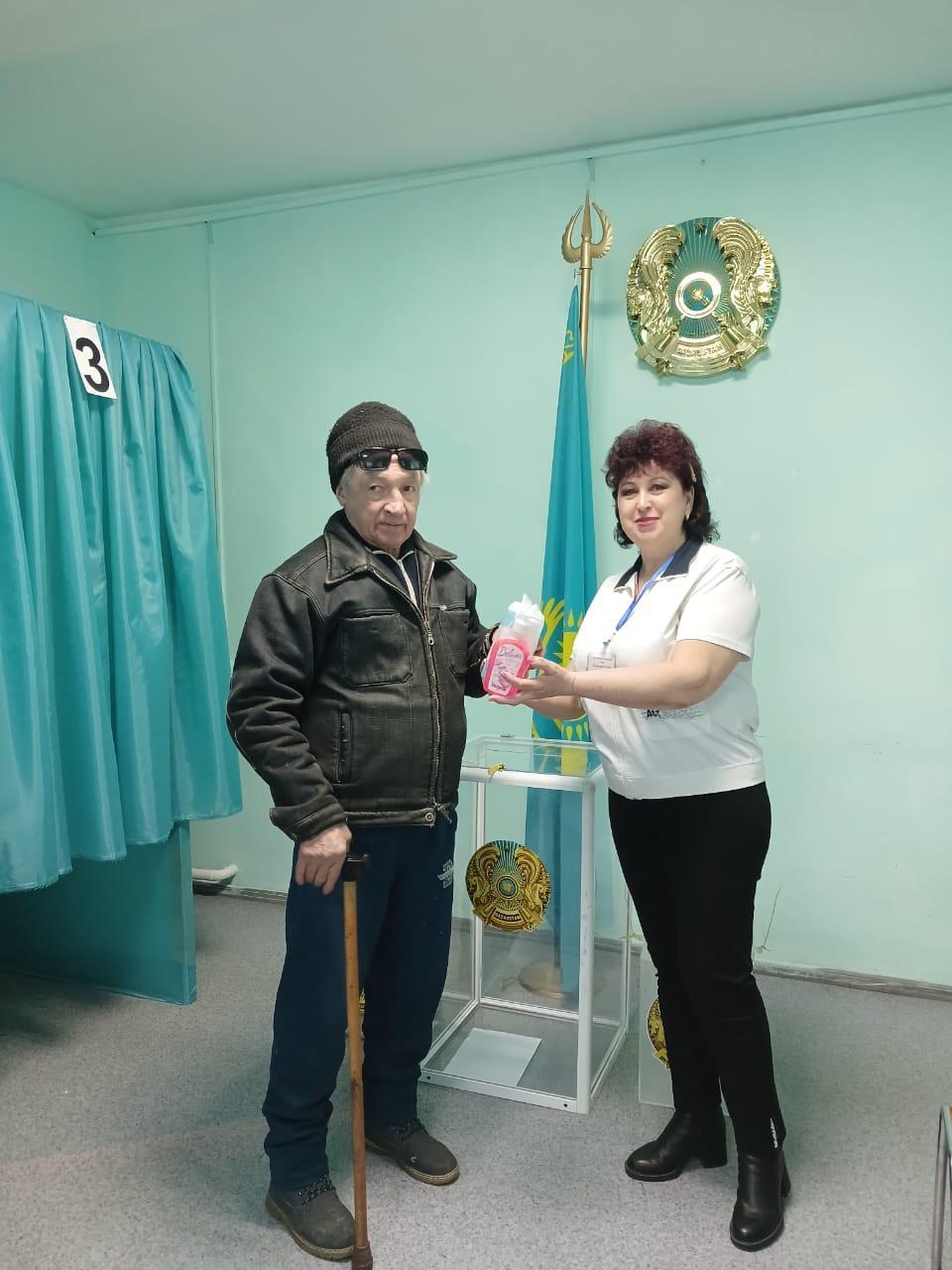 Алғашқылардың бірі болып дауыс берген азаматтарға кішігірім сыйлықтар берілді.