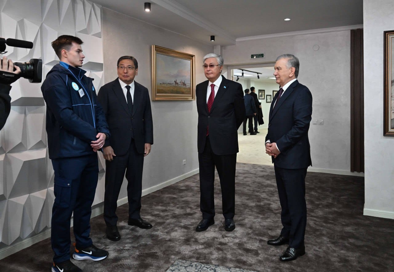 Қасым-Жомарт Тоқаев пен Шавкат Мирзиёев алматылық спортшы Евгений Кошкинмен әңгімелесті. Ол биыл Әлем кубогінің соңғы екі кезеңінде жеңімпаз атанып, Азия ойындарында жүлделі орыннан көрінген болатын. Жуырда өткен Қазақстан спартакиадасында спортшы айқын жеңіске жетіп, 100 метр қашықтықта бейресми әлем рекордын жаңартты (9,31 секунд).