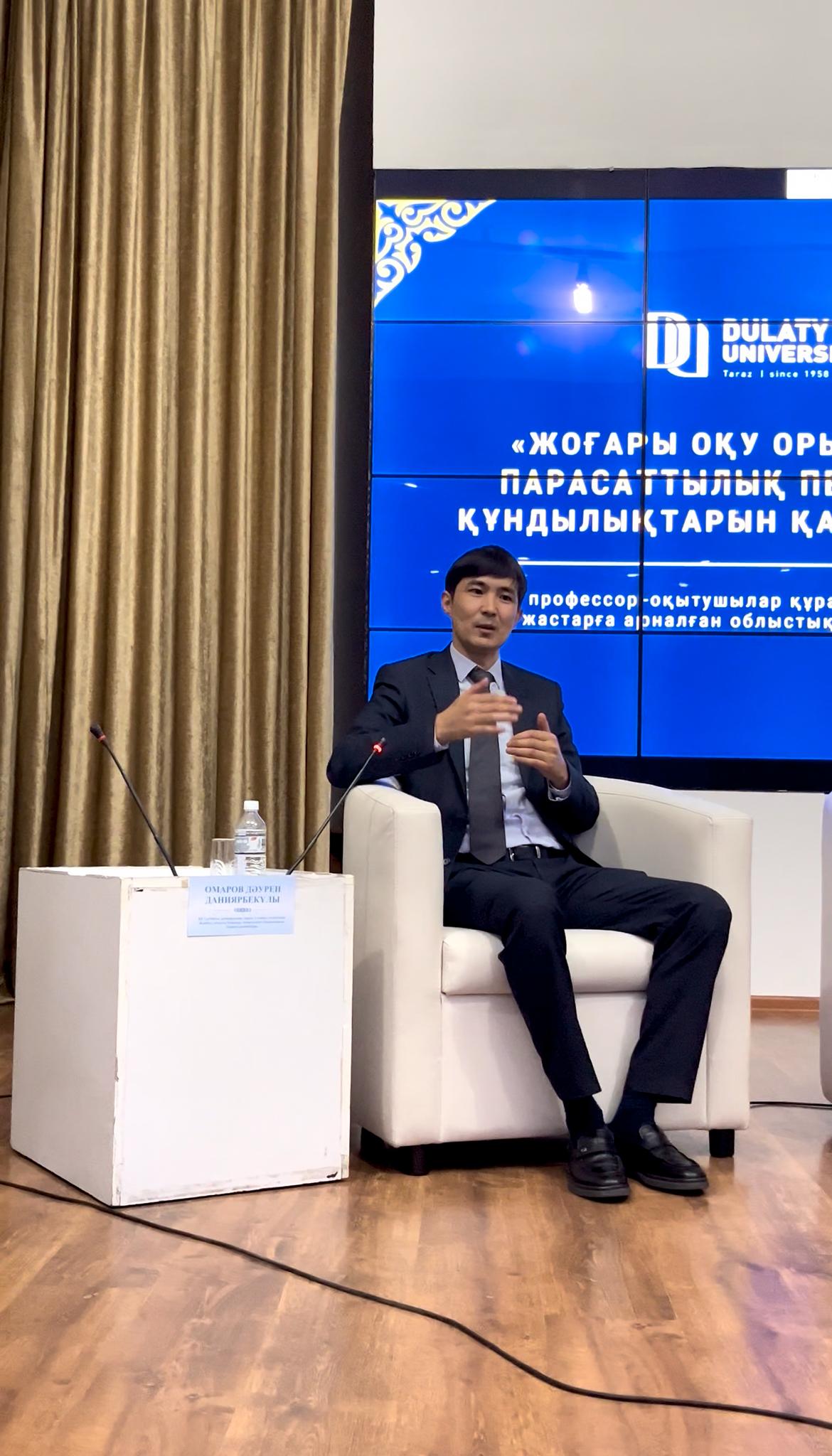Кездесуге қатысқан департамент басшысының бірінші орынбасары Д.Омаров адалдық, парасаттылық және әділдік туралы айтып, жастарды сапалы білім алудың маңызды тұстарына кеңінен тоқталып өтті. Студенттер бұл тақырыпқа үлкен қызығушылық танытып, өздерін қызықтырған сұрақтарын қойып, оларға мазмұнды жауаптар алды.