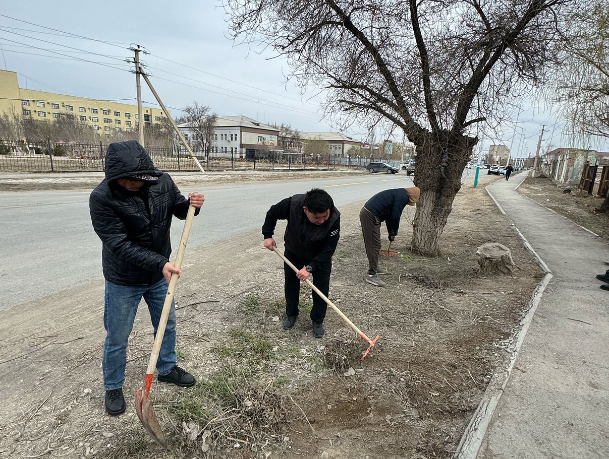 Қызметкерлер көше бойын күл-қоқыстардан, арамшөптерден, тұрмыстық қалдықтардан тазарту жұмыстарын жүргізді.