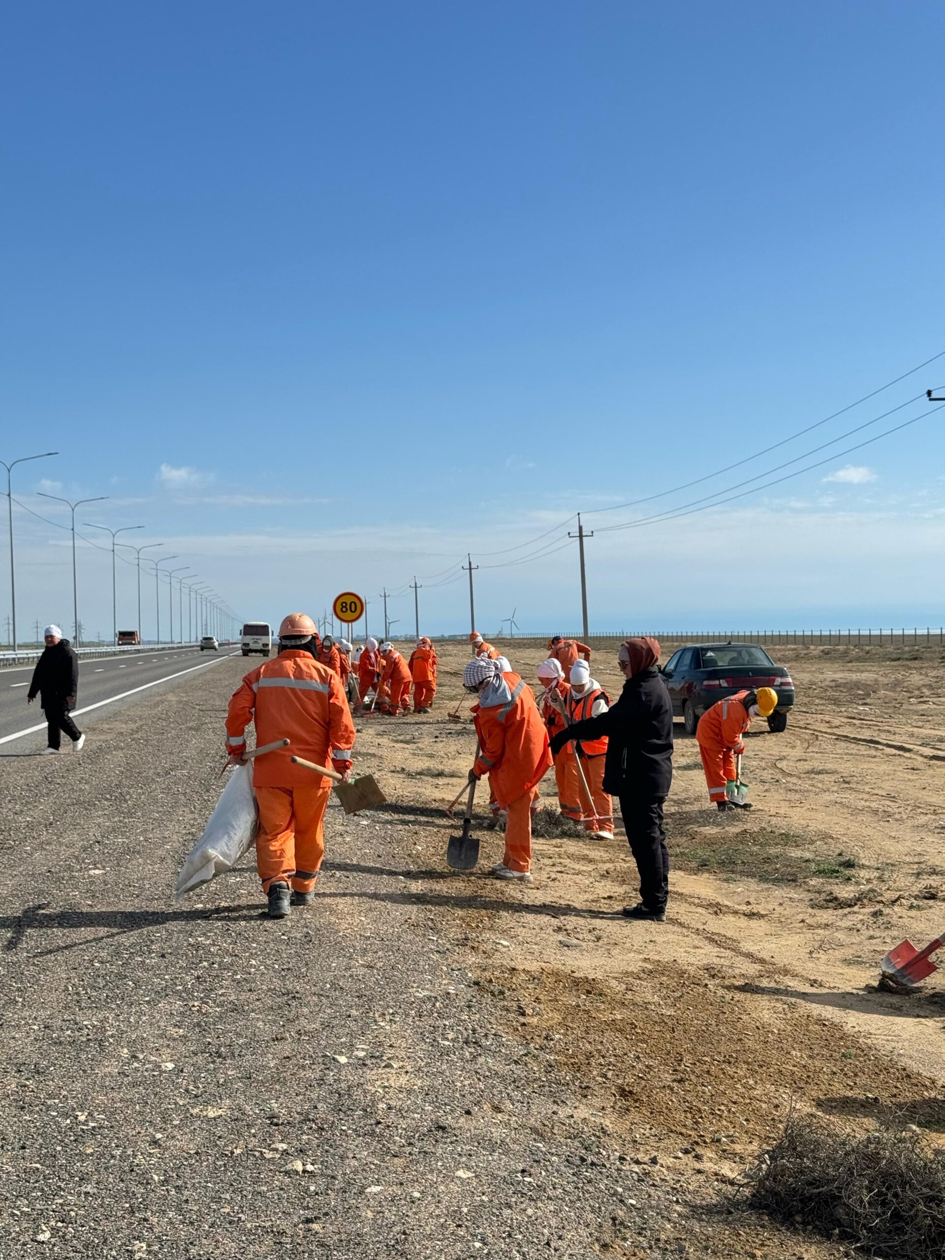 Ақтау қалалық тұрғын үй-коммуналдық шаруашылық бөлімінің тапсырмасымен әуежай тас жолынан бастап қала аумағындағы жолдарда санитарлық тазалық жұмыстары күшейтілген режимде жүргізілуде.