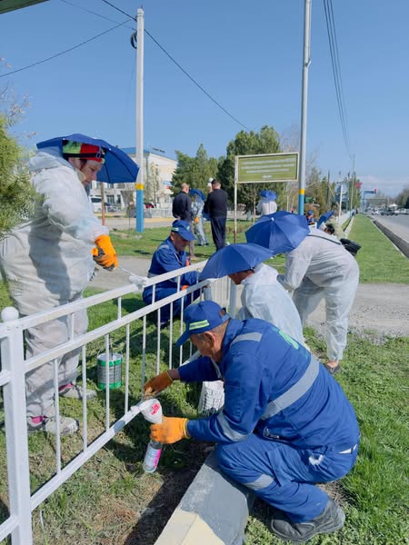 Бағдарлама аясында, көше бойындағы қоқыстар және арық-атыздар тазартылып, ретсіз өсіп кеткен ағаш бұталары реттелуде, тал түптері әктеліп, қоршаулар сырлануда.