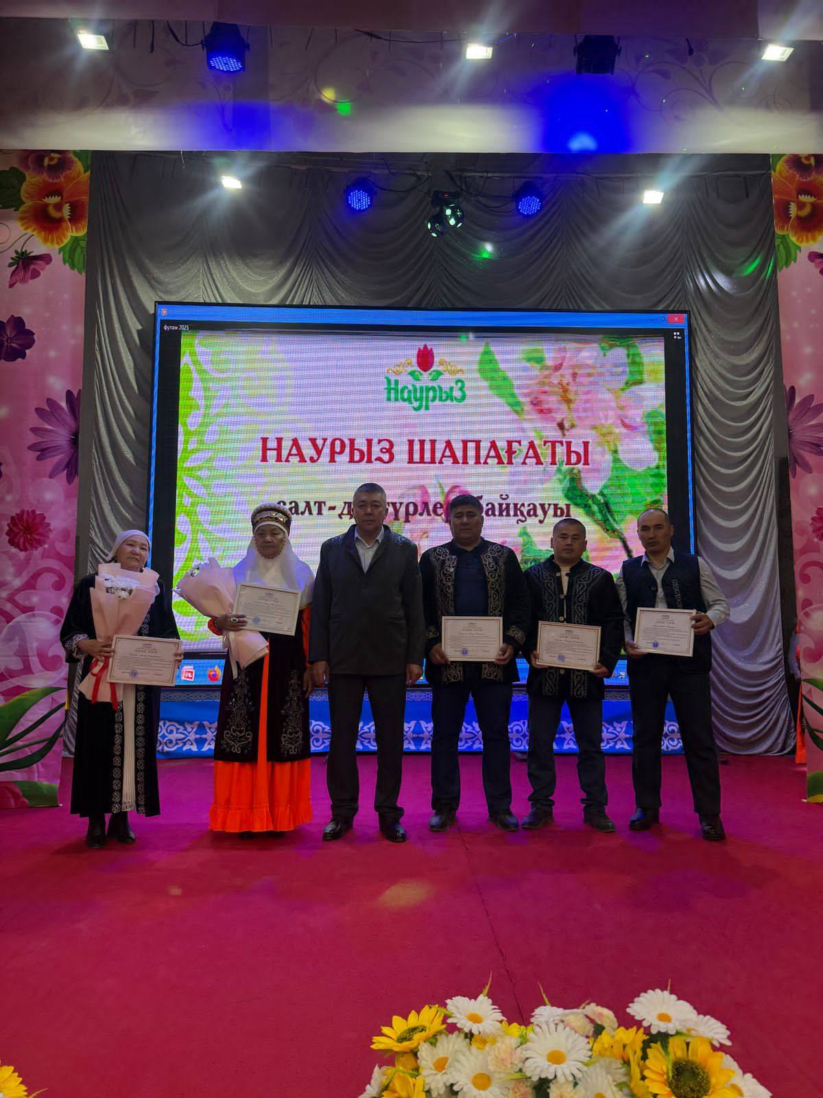 Ұлыстың Ұлы күні Наурыз мерекесіне орай”Наурыз шапағаты” атты мерекелік шара өткізілді. Шараны ауыл әкімі Есжанов Галымжан Сансызбайұлы ашып беріп, ауыл тұрғындарын Наурыз мерекесімен құттықтап,өз саласында еңбек етіп жүрген азаматтарды Аудан әкімі Ардақ Ибраимовтың арнайы алғыс хатымен марапаттады.Ауылымыздың шарасына Аудандық мәслихат төрағасы Елеусінов Өмірзақ Тұрымбетұлы қонақ болып,ауыл тұрғындарын Наурыз мерекесімен құттықтап,жылы лебізін білдіріп,мерекелік шараны тамашалады.Ауыл өнерпаздары өз өнерлерін ортаға салып, мекемелер арасында “Бастаңғы” ,”Құда түсу”,”Қазан жарыс “,”Сүйіндіру “сынды салт- дәстүрлерінен қойылым көрсетілді.Ерлер арасында гір тасын көтеру,арқан тартыс ойындары ойнатылды.Жеңімпаздар арнайы дипломмен ақшалай сый сияпатпен марапатталды.Мерекелік шараға демеушілік танытқан “Мега Агро” ЖШС директоры Еспанов Манарбек Ұзақұлына алғысымызды білдіреміз.Шараның соңы ауылымыздың шабандоздарының бәйге,көкпар сынды қазақтың ұлттық ойындарымен жалғасты.Ат спортына жанашыр жандар 420 000 теңге ақшалай сый сияпат дайындап,доданы топ жарған үздіктерді арнайы диплом мен ақшалай сый-сияпатпен марапаттады.