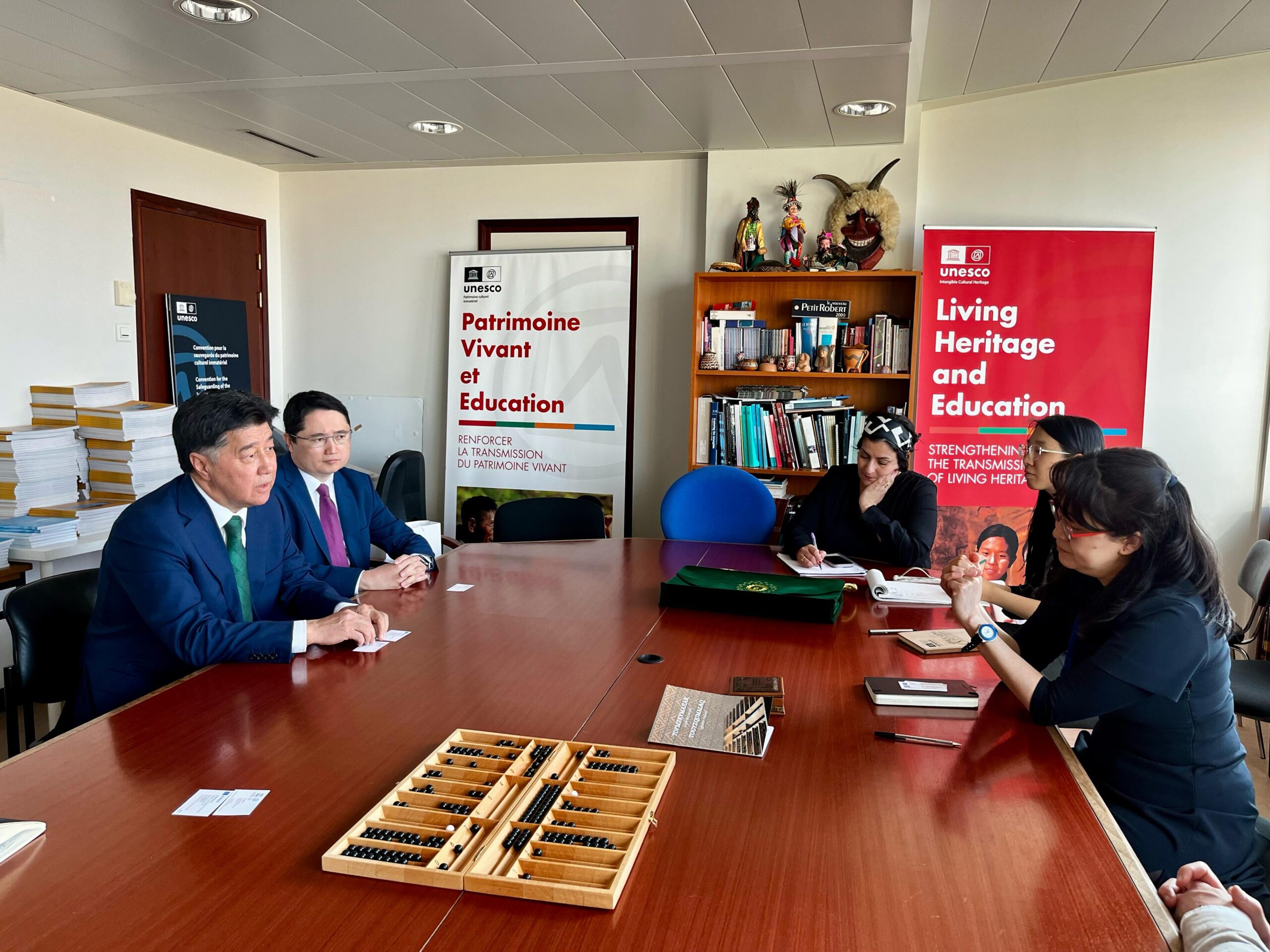 Париж, 2025 жылғы 27 наурыз – Қазақстанның ЮНЕСКО-дағы Тұрақты өкілдігінің қолдауымен осы халықаралық ұйымның Париждегі бас пәтерінде Дүниежүзілік тоғызқұмалақ федерациясының президенті Әлихан Байменов пен Материалдық емес мәдени мұраны қорғау жөніндегі Конвенция хатшылығының басшысы Фумико Охинатаның кездесуі өтті.