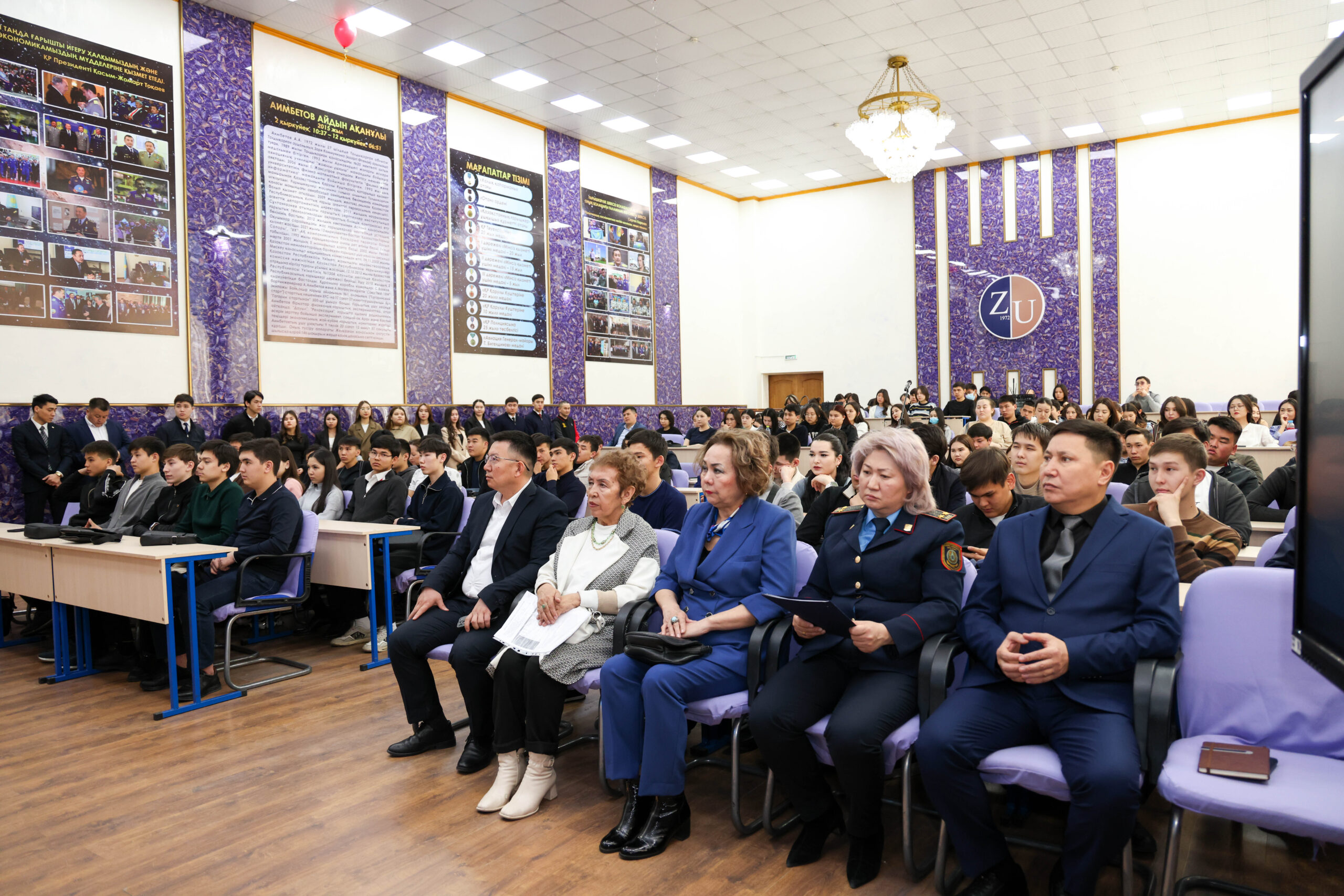 Семинар Қазақстан Республикасының Президенті Қ.-Ж. Тоқаевтың Қазақстан халқына Жолдауындағы «Әділетті Қазақстан: заң және тәртіп, экономикалық өсім, қоғамдық оптимизм» басым міндеттерін жүзеге асыру шеңберінде өткізілді. Іс-шара барысында университет ұжымы мен студенттердің Қазақстан Республикасының Сыбайлас жемқорлыққа қарсы іс-қимыл агенттігінің Жетісу облысы бойынша департаментінің басшысы С. Ахметжановпен кездесуі өтті.
