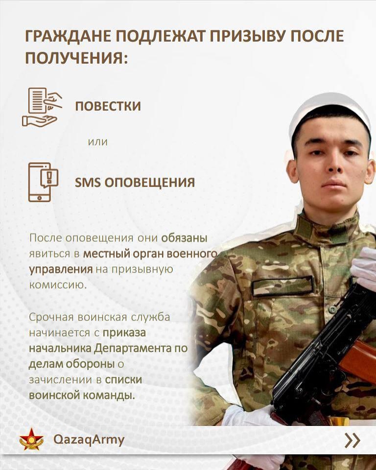 1 наурызда Қазақстанда Қарулы Күштерге, басқа да әскерлер мен әскери құралымдарға көктемгі шақыру науқаны басталады. Әскерге шақырылушыларға хабарландыру қалай жүргізіледі? Мемлекет сарбаздарды немен қамтамасыз етеді? Оларға қандай жеңілдіктер беріледі және әскердегі қызмет кейінгі өмірге қалай әсер етуі мүмкін? Осы сұрақтардың бәріне Сіз Қорғаныс министрлігі әскерге шақырылушыларға арнайы әзірлеген инфографикадан жауап ала аласыз. @modgovkz / x.com / insta / t.me / youtube /