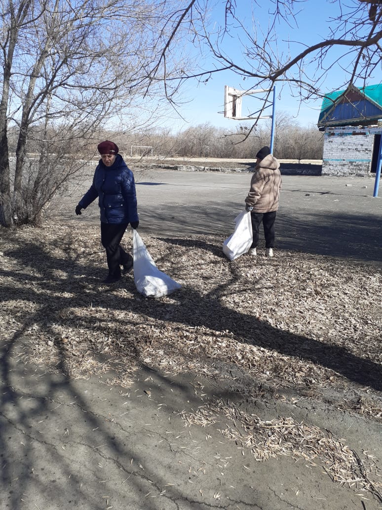 “Айналайын“ балабақшасының қызметкерлері Пешков ауылының аллеясында сенбілік өткізді