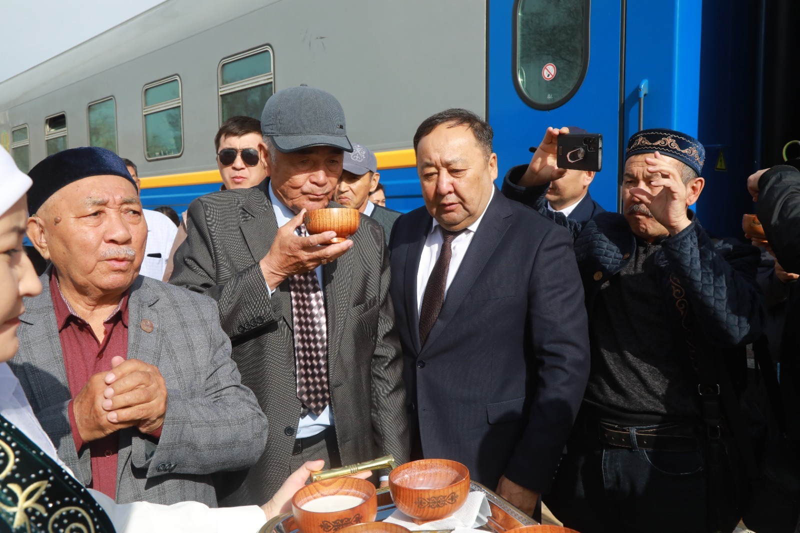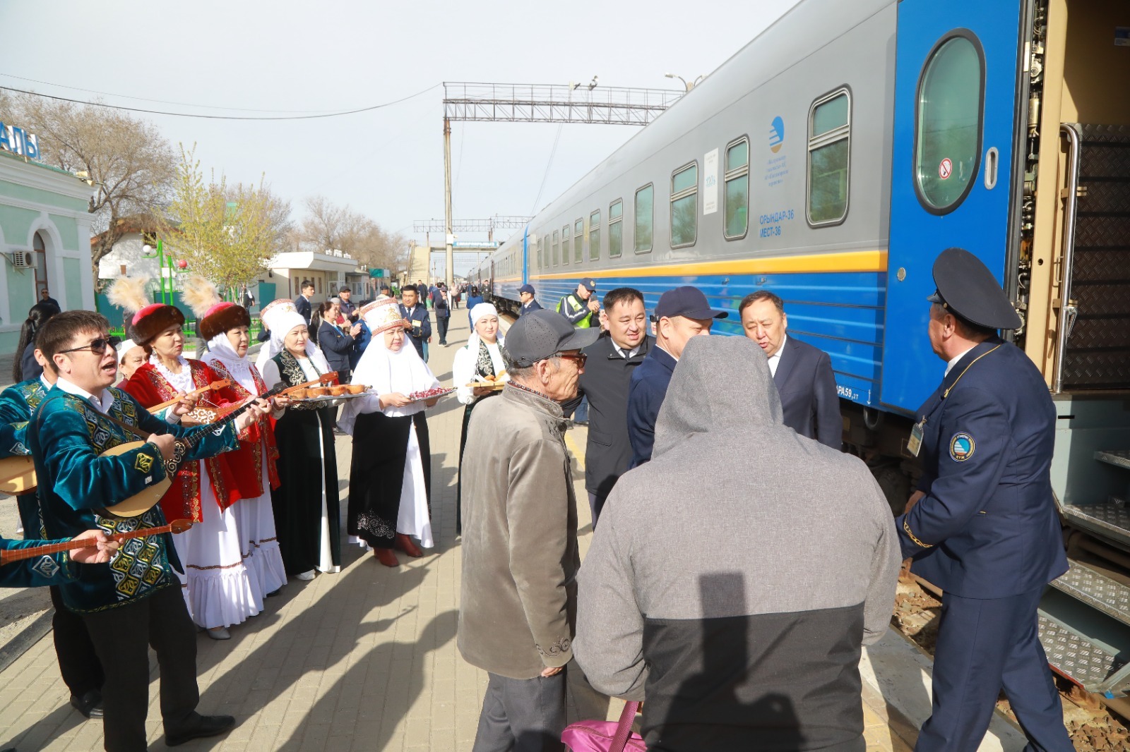 2 сәуірде арқадан бері қарай аяңдаған жолаушылар пойызын Арал қаласының әкімі және аудандық мәдениет және тілдерді дамыту бөлімінің басшысы бастаған, өнерпаздар мен жерлестер ерекше ықыласпен қарсы алып, жолаушыларға халқымыздың ұлттық асынан дәм ұсынды.