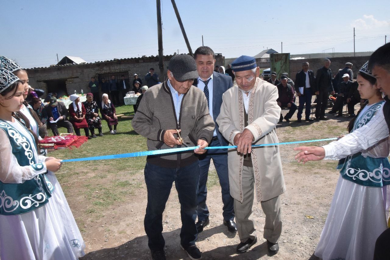 Үйдің лентасын ауыл қариялары Орынбай Балтабаев пен Сапаралы Түктеев қиған бетте, ақ жаулықты аналар шашу шашты. Келген қонақтармен бірге ауыл тұрғындары ішке еніп, үш бөлмелі шағын үйді аралап көрді. Бұдан әрі қонақтар жайылған дастарханнан дәм татып, оқылған құранға қол жайды.