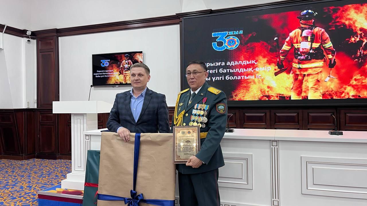 Құрмет пен алғыс белгісі ретінде Алматы облысы ТЖД қызметкерлері Асқар Тасболатұлына қазақтың ұлттық шапанын және бағалы сыйлықтарын табыс етті.