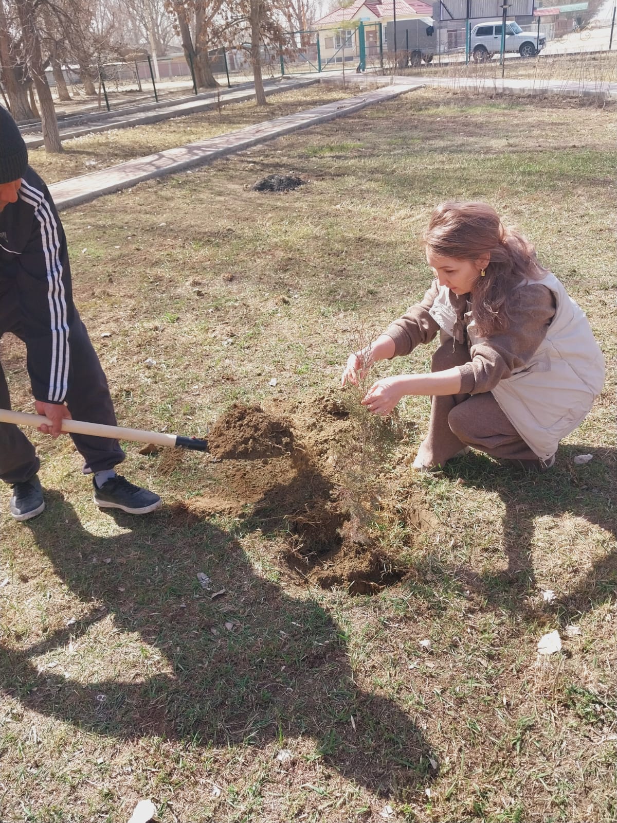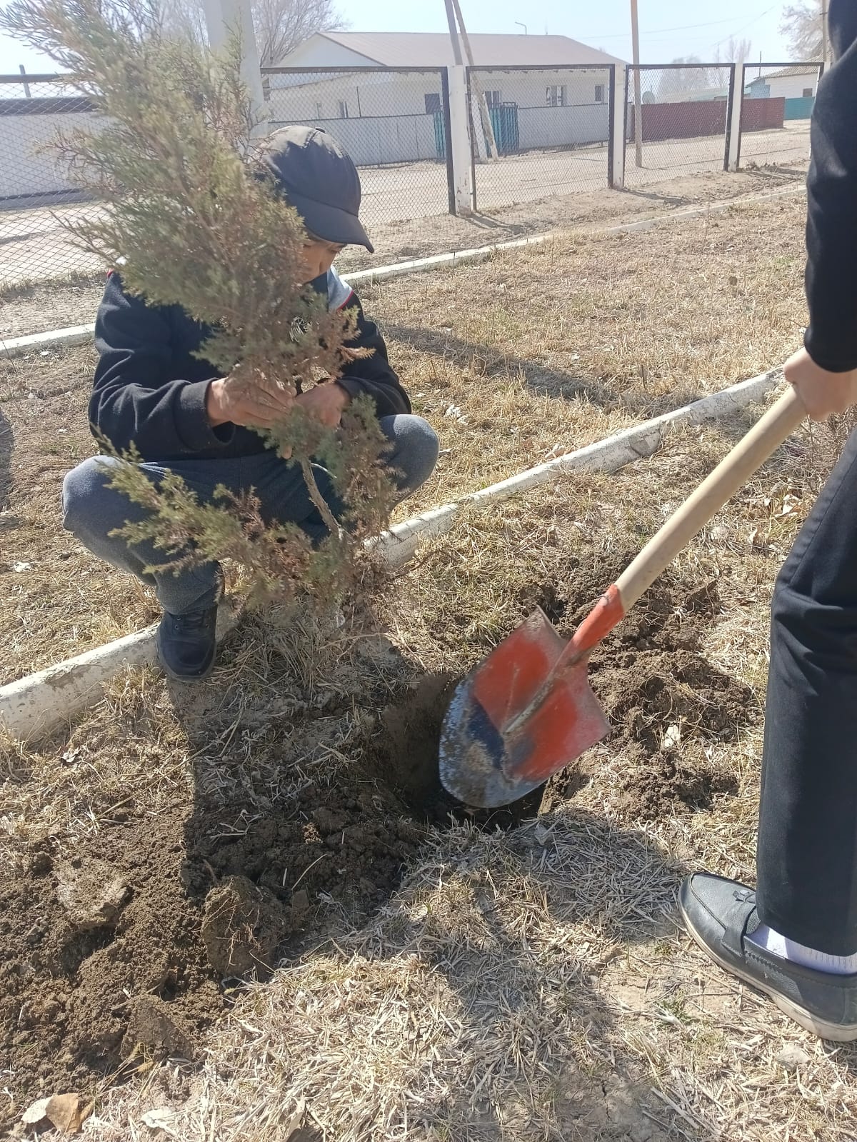 Береке ауылында”Жасыл аула” акциясы бойынша ағаш көшеттері отырғызылды.