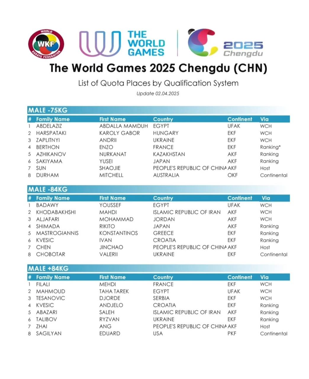 Бұл кешенді жарысқа үздіктердің-үздігі жолдама алды. Барлығы Чэндуда таңдаулы 96 каратэші жүлдеге таласады. Олар әлем чемпионаты және рейтинг нәтижесінде іріктелді. Каратэден жарыс 8-9 тамызға жоспарланған.