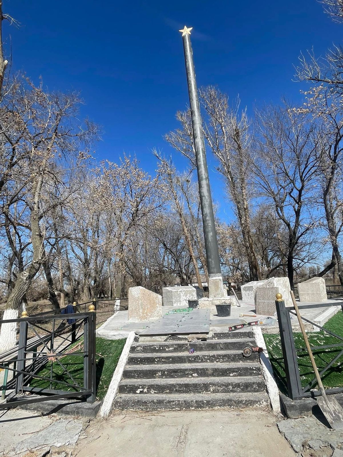 Және де Ескелді ауылдық округі, Қызылжар ауылындағы «Обелиск Славы» ескерткішіне жөндеу жұмыстары жүргізілу барысы.