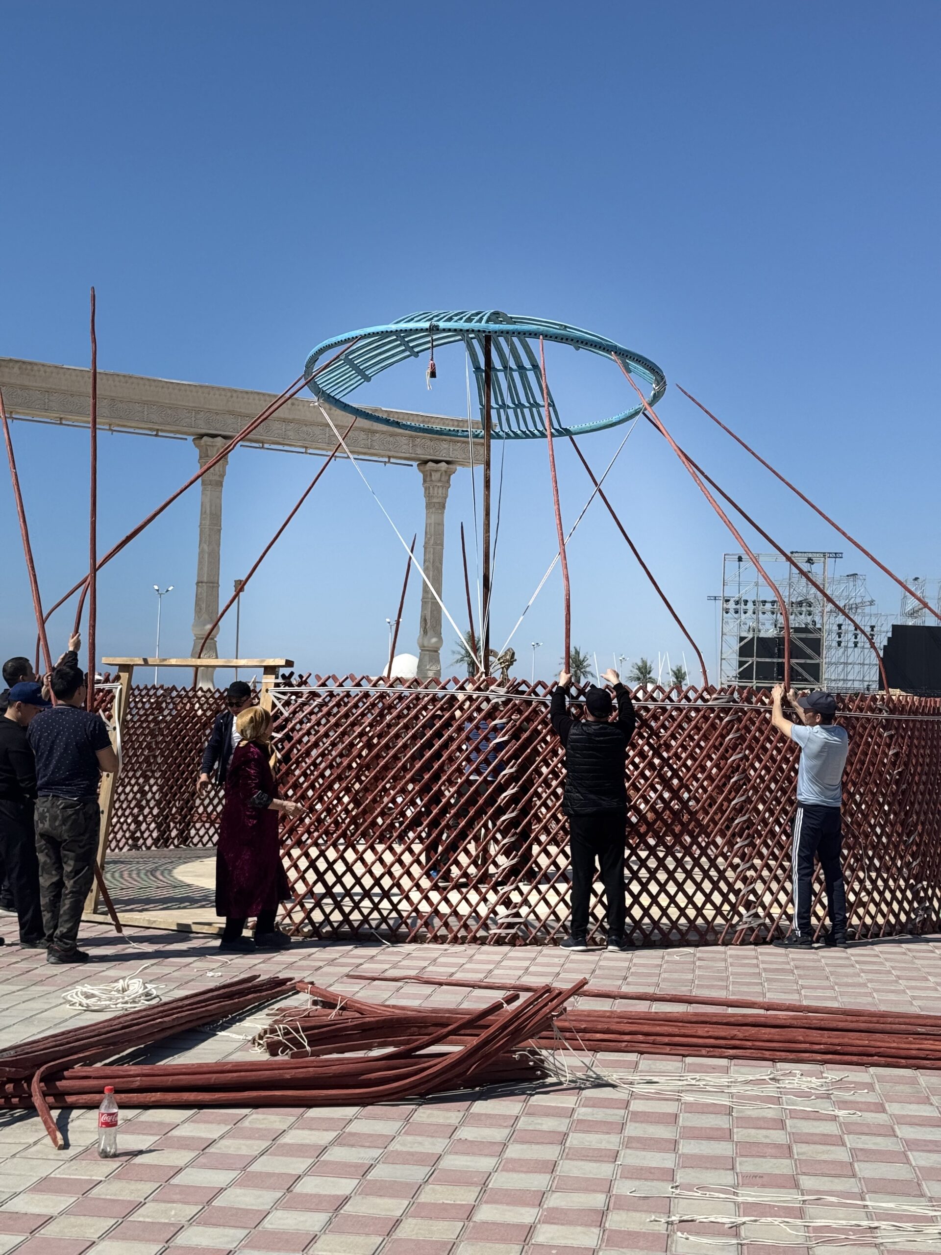 Дәл қазір “Дархан дала” этно қалашығы аумағында қаз-қатар киіз үйлер тігіліп, ірі сахналар құрылуда.