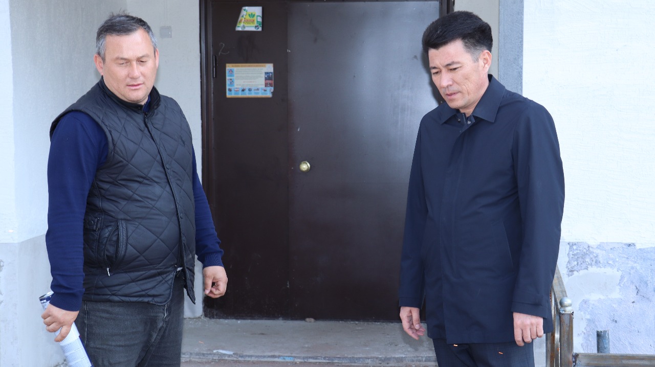 Аудан әкімі Ернар Есіркепов Құлан ауылындағы И.Панфилов көшесіндегі көпқабатты тұрғын үйлерде жүргізіліп жатқан жөндеу жұмыстарының барысын зерделеді.