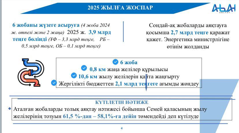 Аймақ басшысы Семей қаласының жылу инфрақұрылымын жаңарту басым бағыттардың бірі екенін атап өтті.